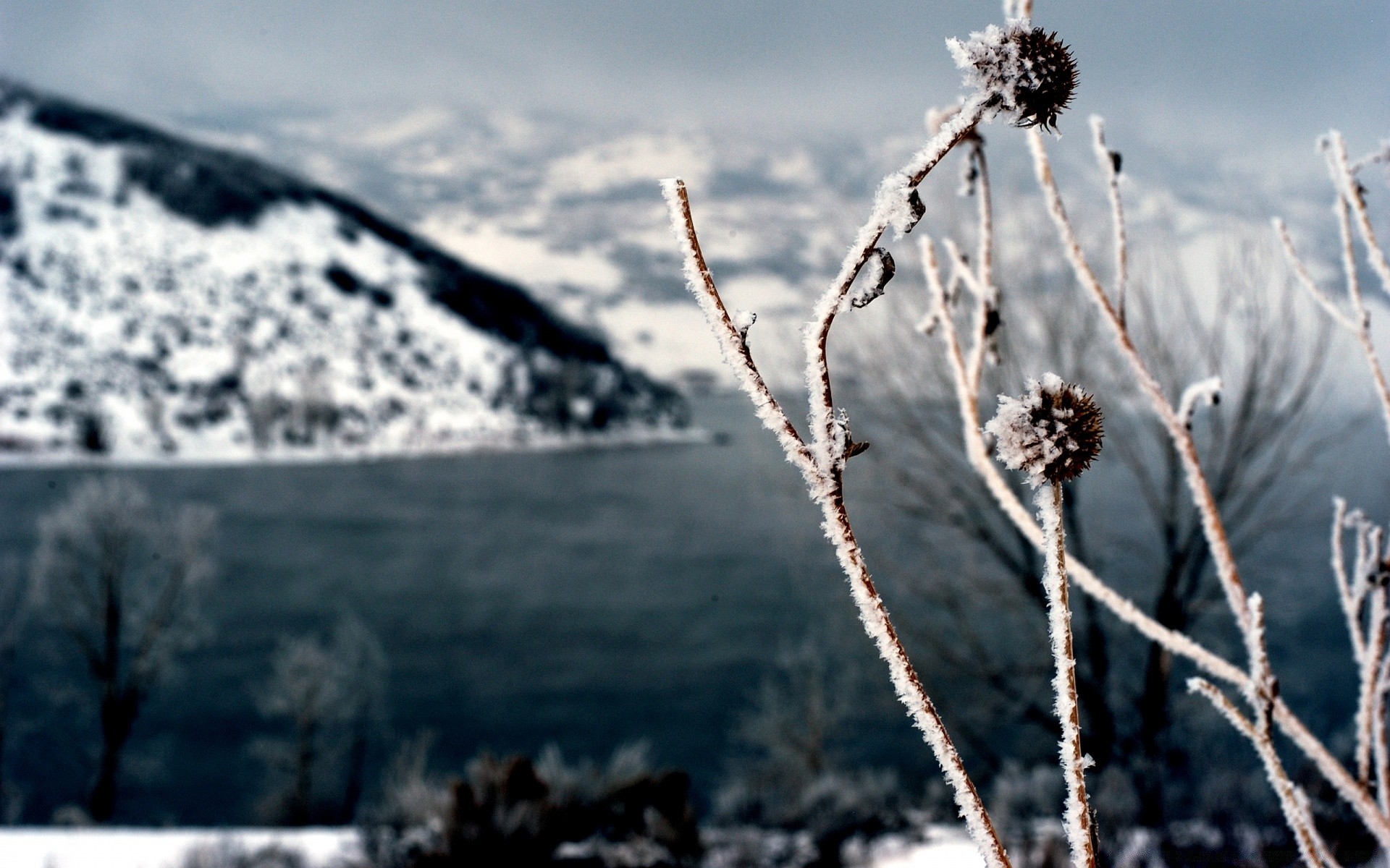 Bäume im Winter bei Frost unter Schnee