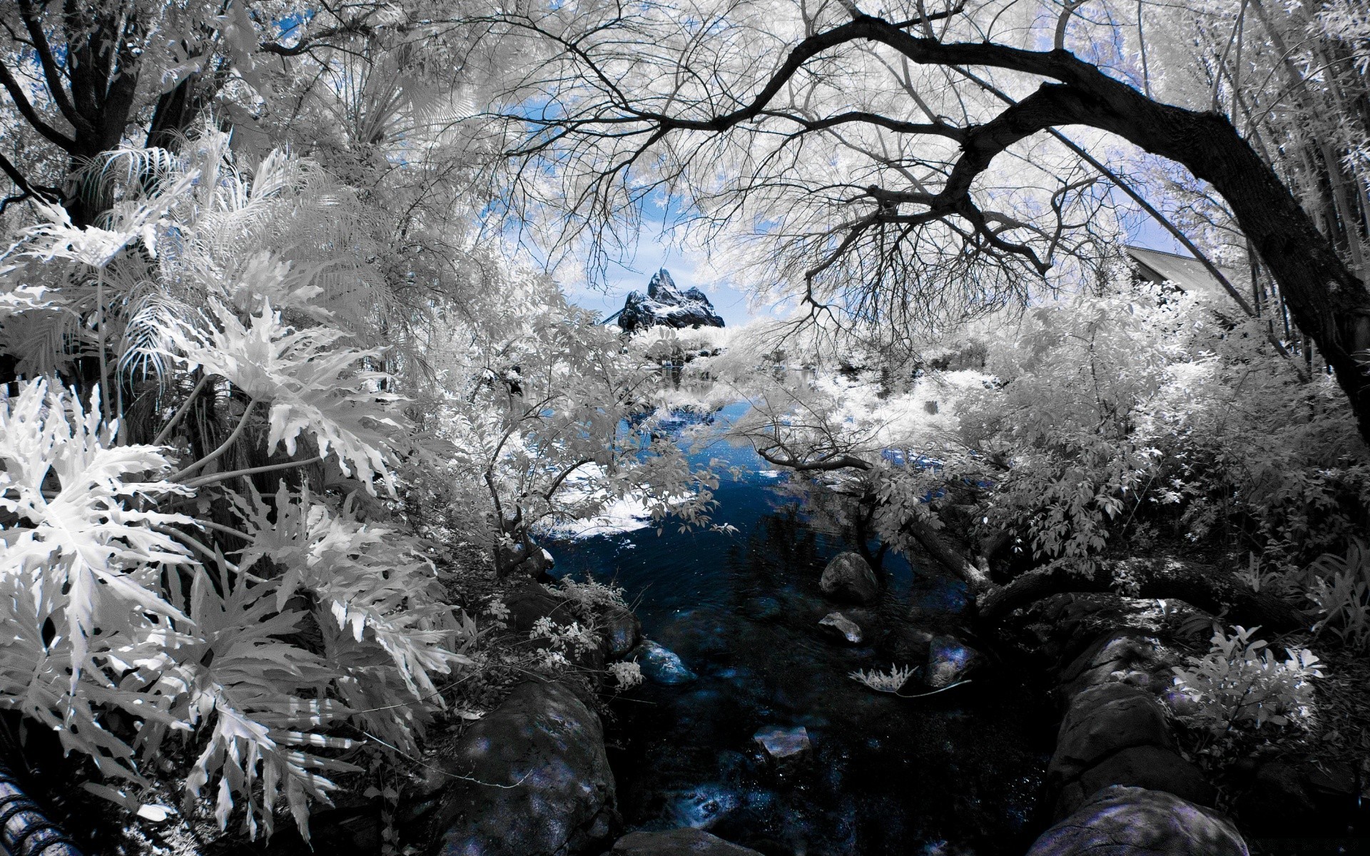 Schneebedeckte Häuser am Hang bei Sonnenuntergang