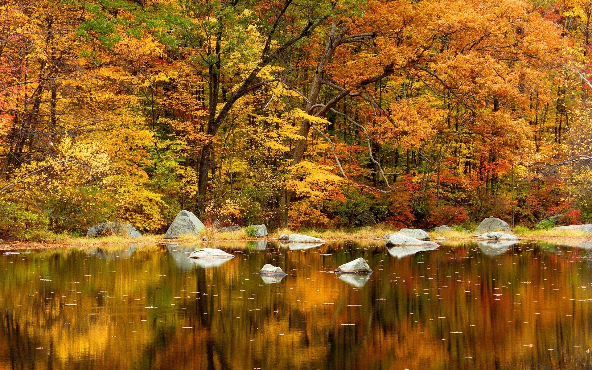 Der Fluss. Herbstwald. Reflexion im Wasser