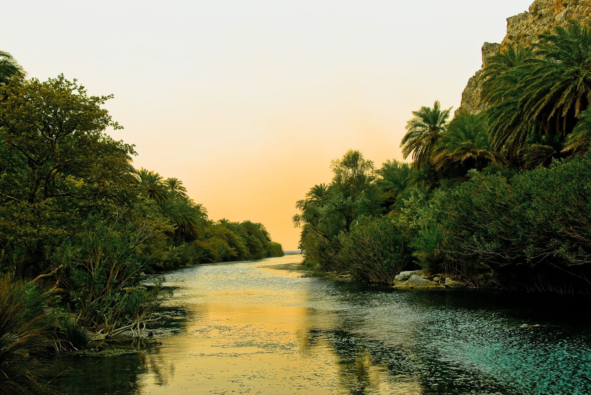 Ein Fluss mit einer leichten Strömung zwischen den Büschen