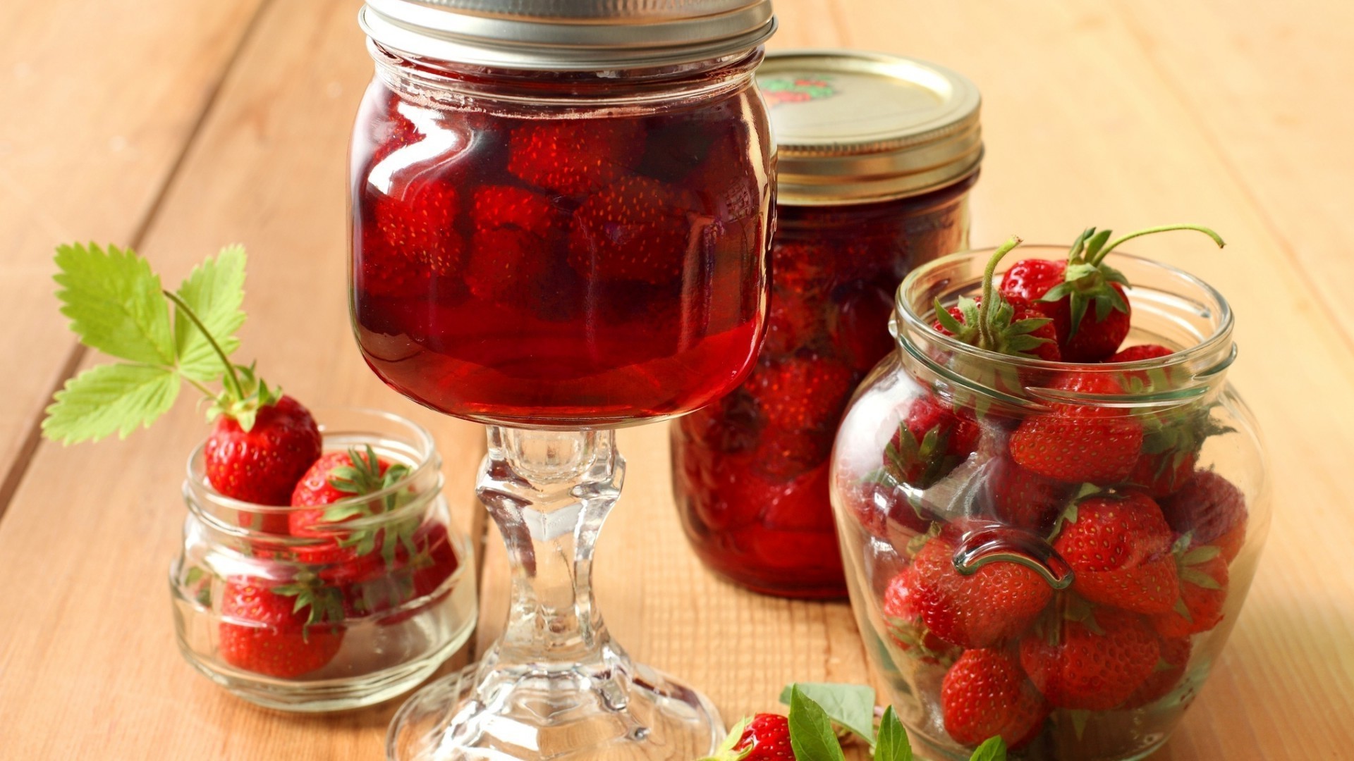 Hausgemachte Erdbeermarmelade in Gläsern