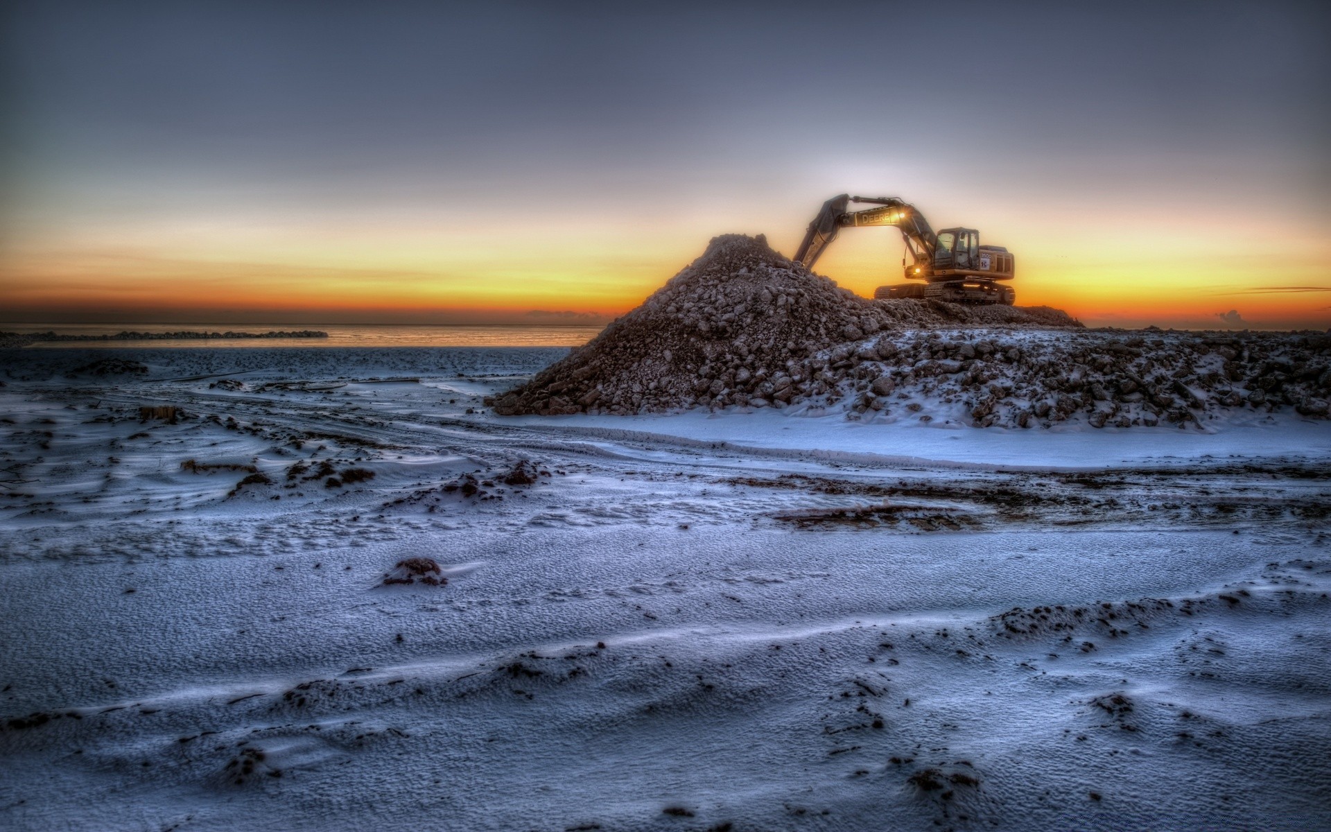 Traktor auf gelb-orange Sonnenuntergang Hintergrund
