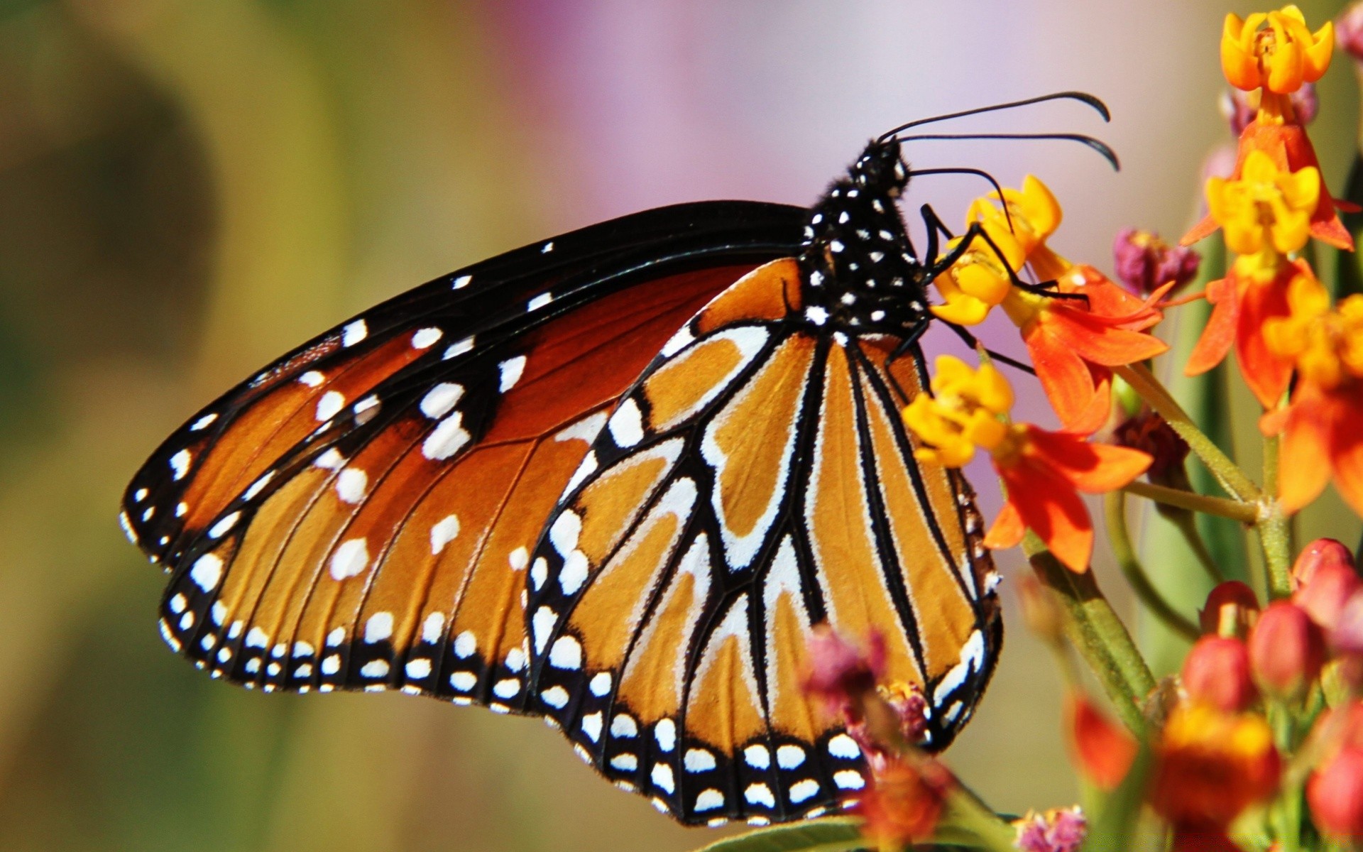 Ein Schmetterling sitzt auf einer orangefarbenen Blume