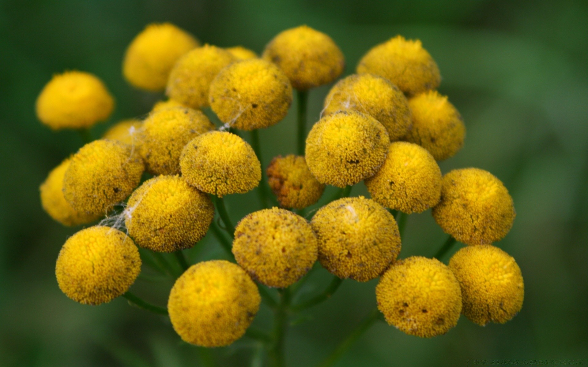 Gelbe flauschige Blume auf grünem Hintergrund