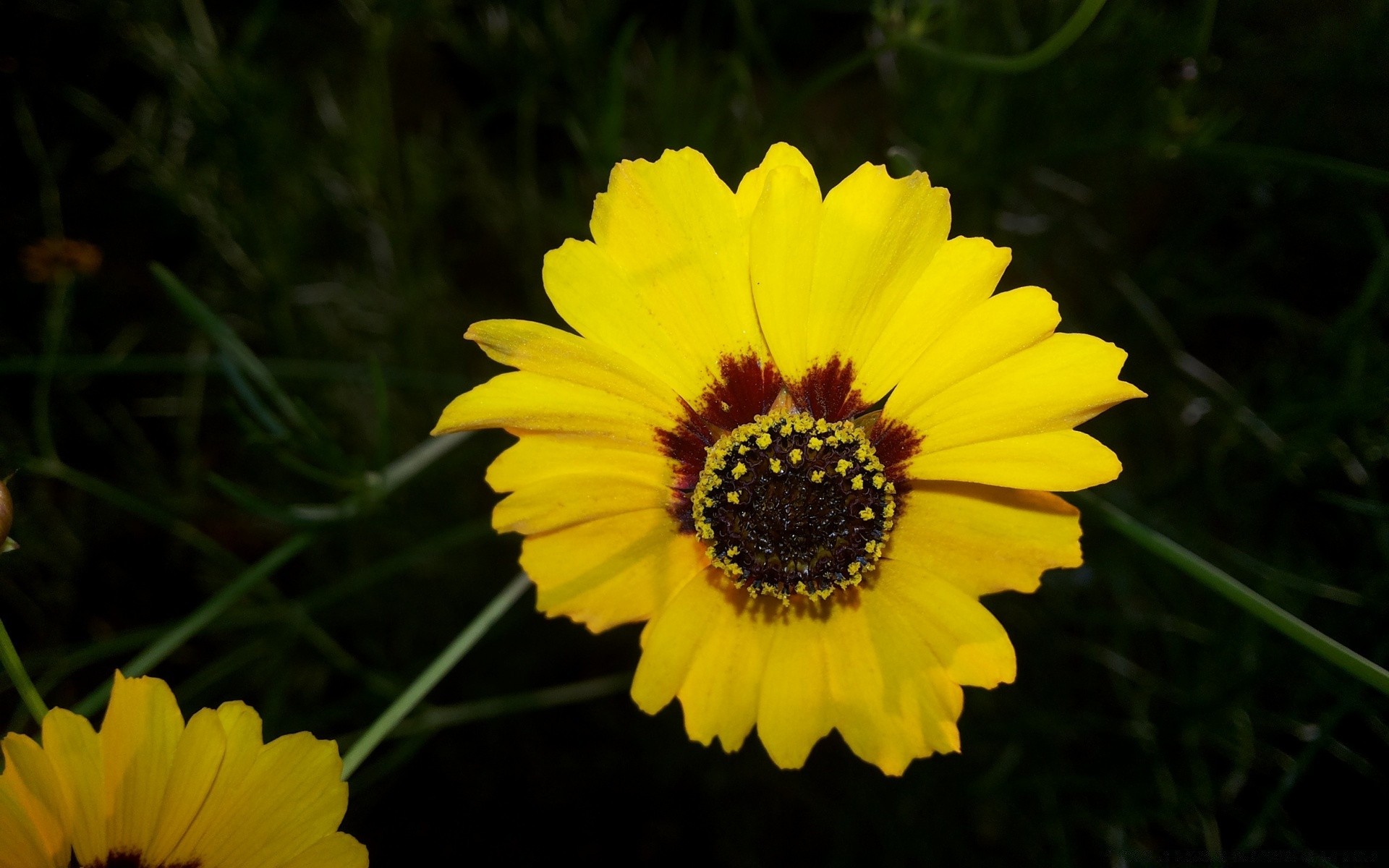 Leuchtend gelbe Blumen auf grünem Hintergrund