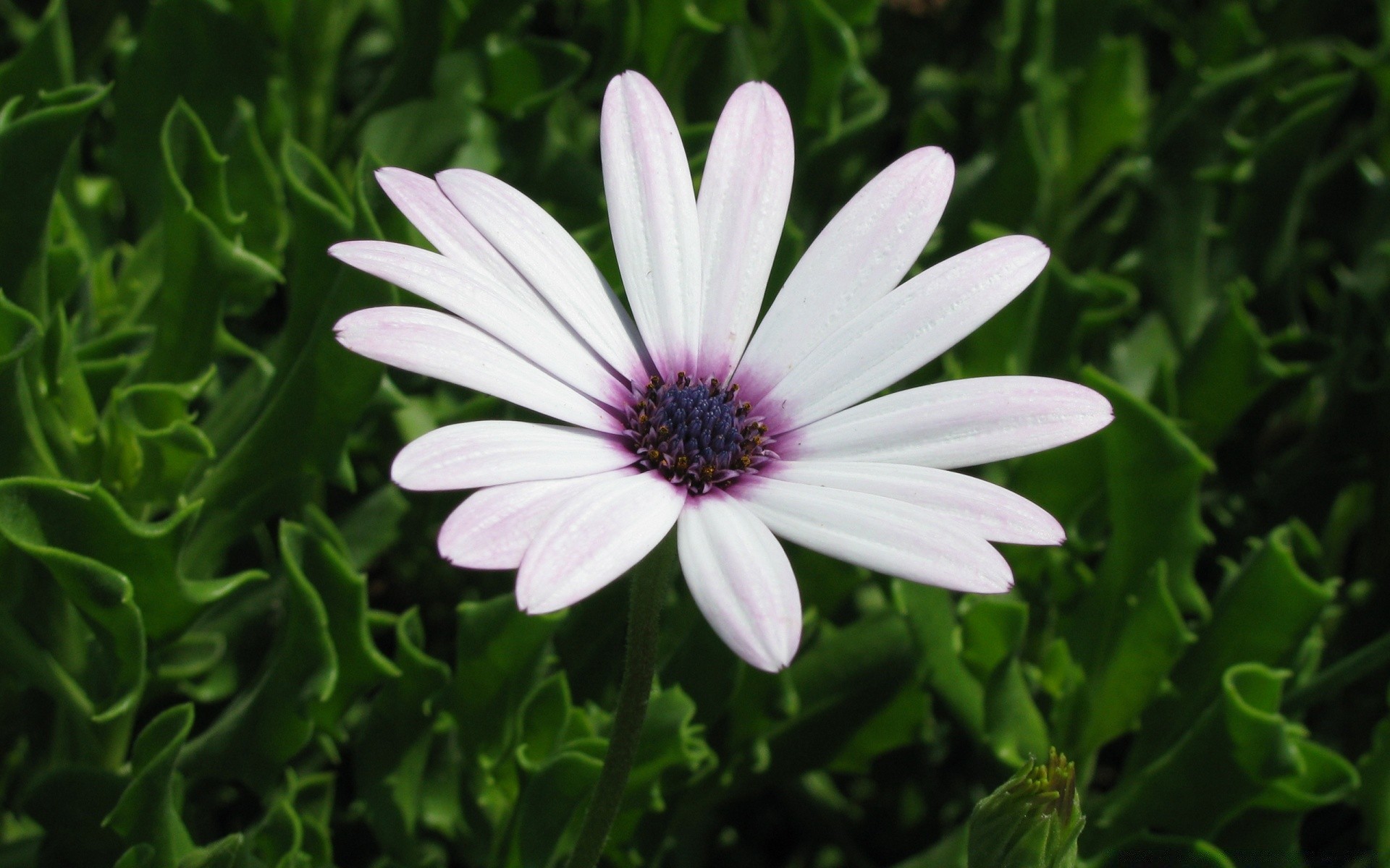 Weiße Blume auf grünem Gras Hintergrund