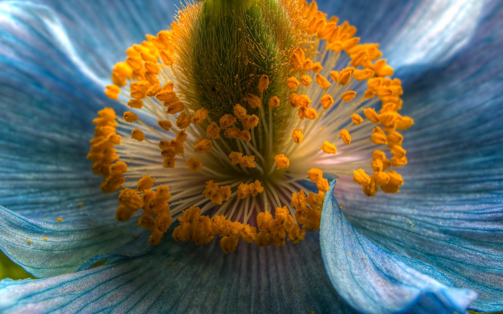 Nahaufnahme einer Tasse Blume mit blauen Blütenblättern