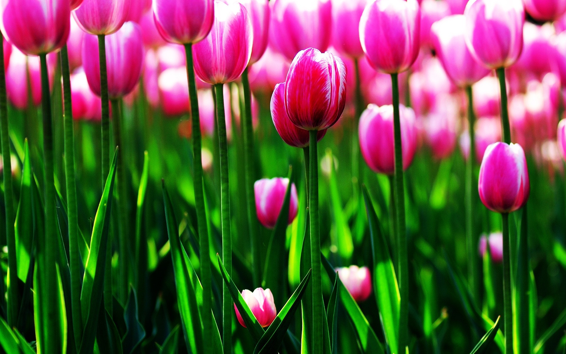Feld von rosa Tulpen mit weißen Adern