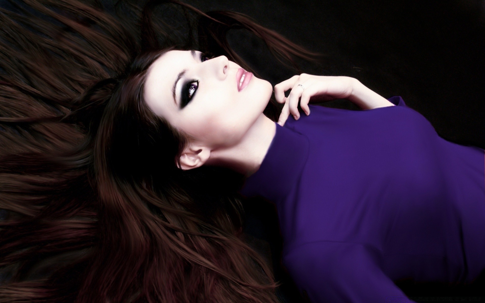 Foto eines Mädchens mit schönen Augen auf dunklem Hintergrund