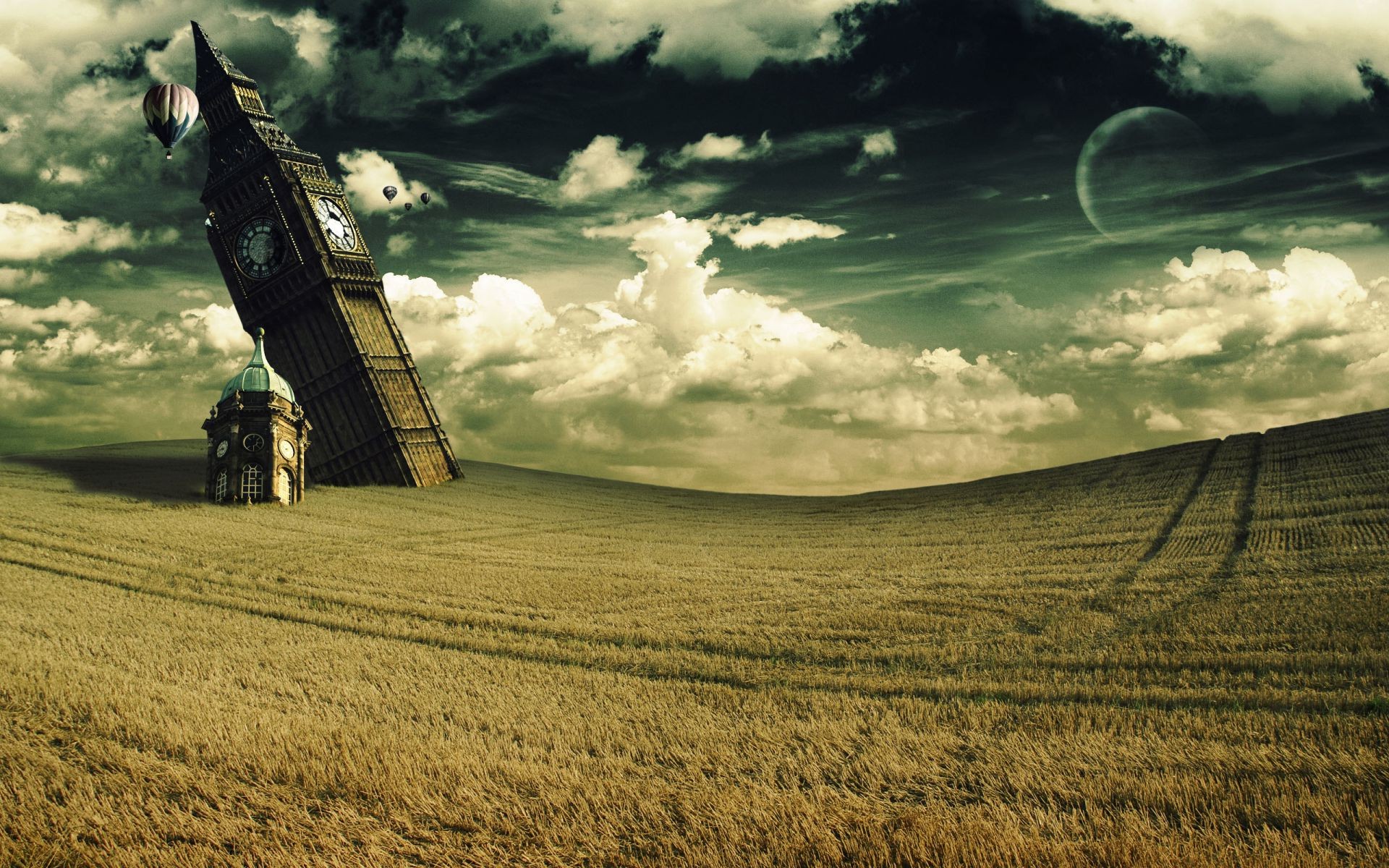 Big Ben Uhr in einem Feld vor einem bewölkten Himmelshintergrund