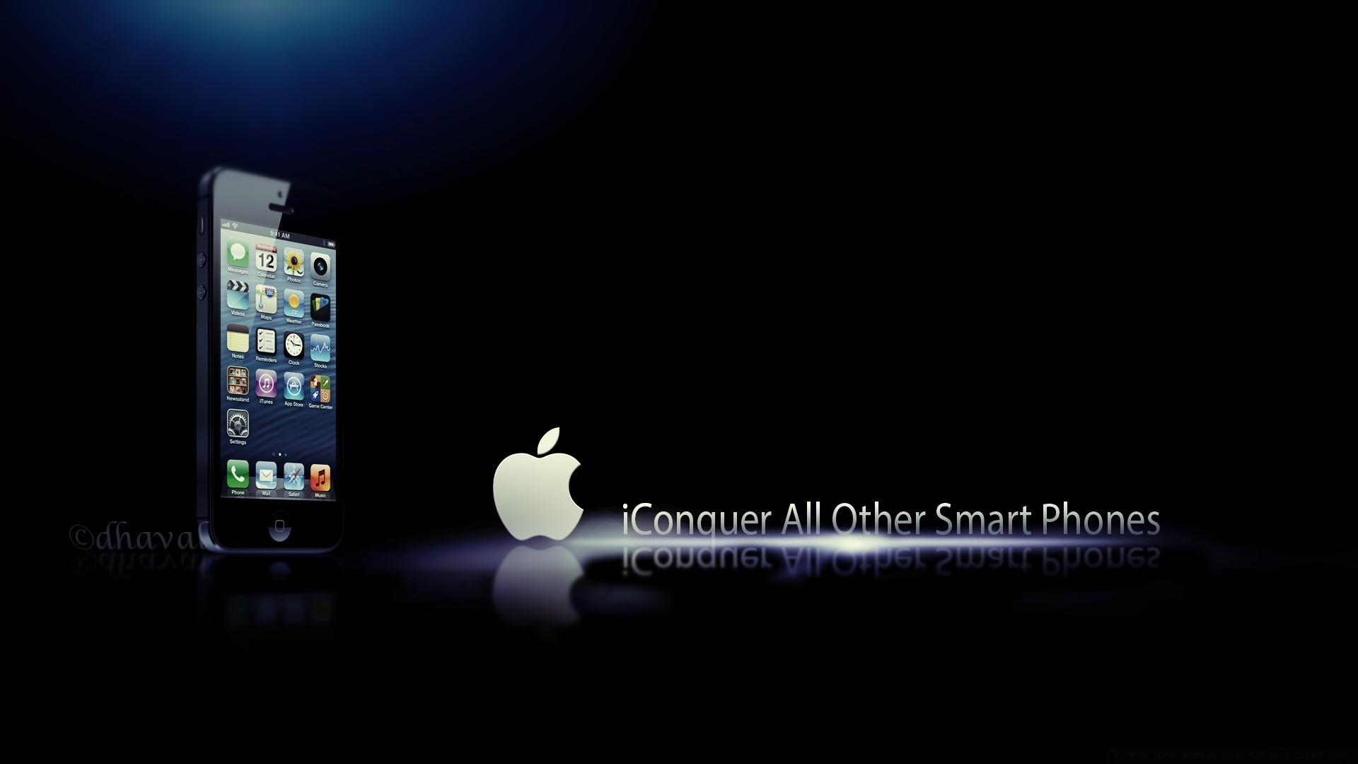 Apple-Logo auf dunklem Hintergrund und Smartphone
