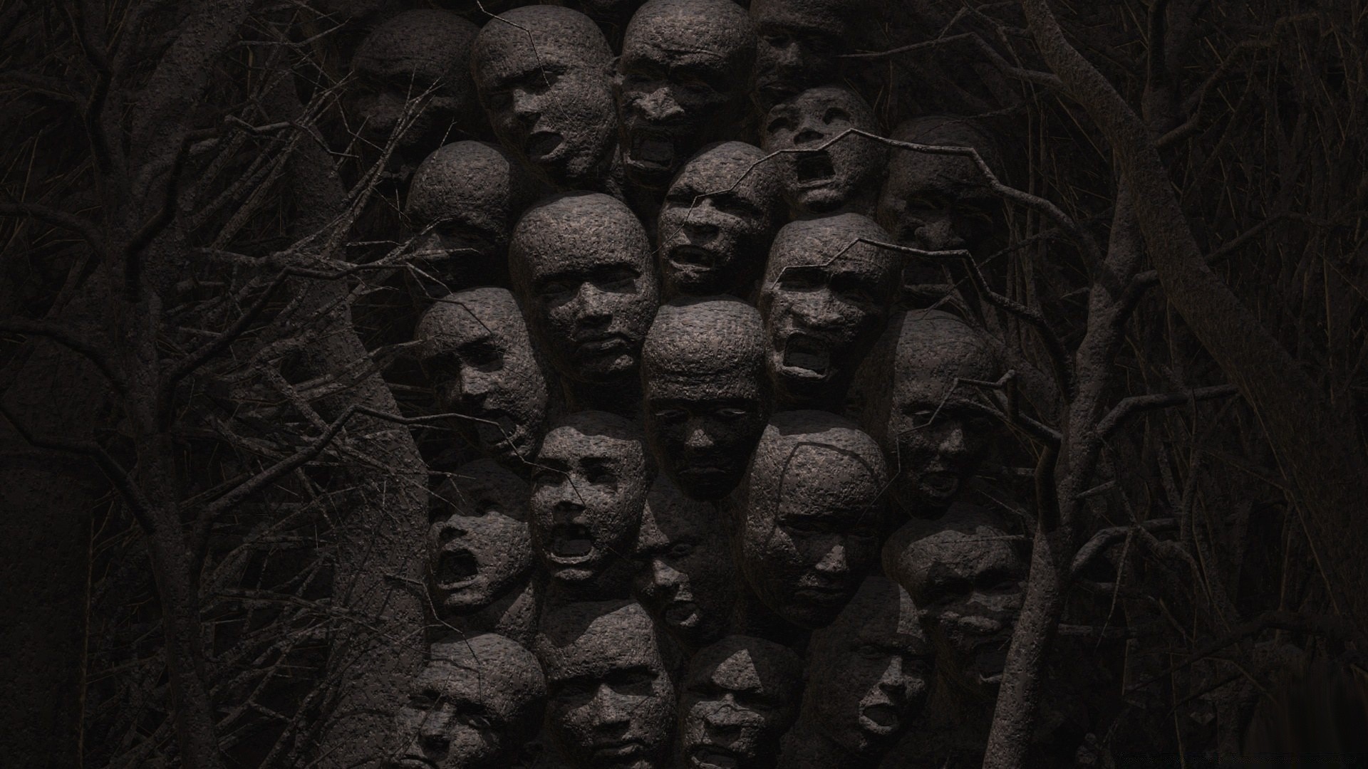 Fantasy-Kunst, Silhouette auf dem Friedhof, aus dem Grab auferstanden