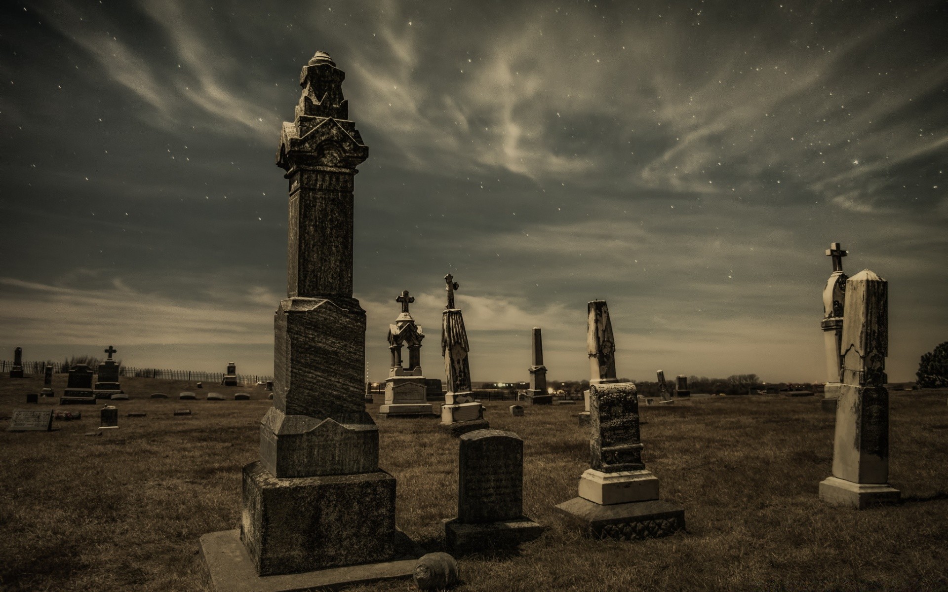Friedhof bei Sonnenuntergang in monochromen Farben