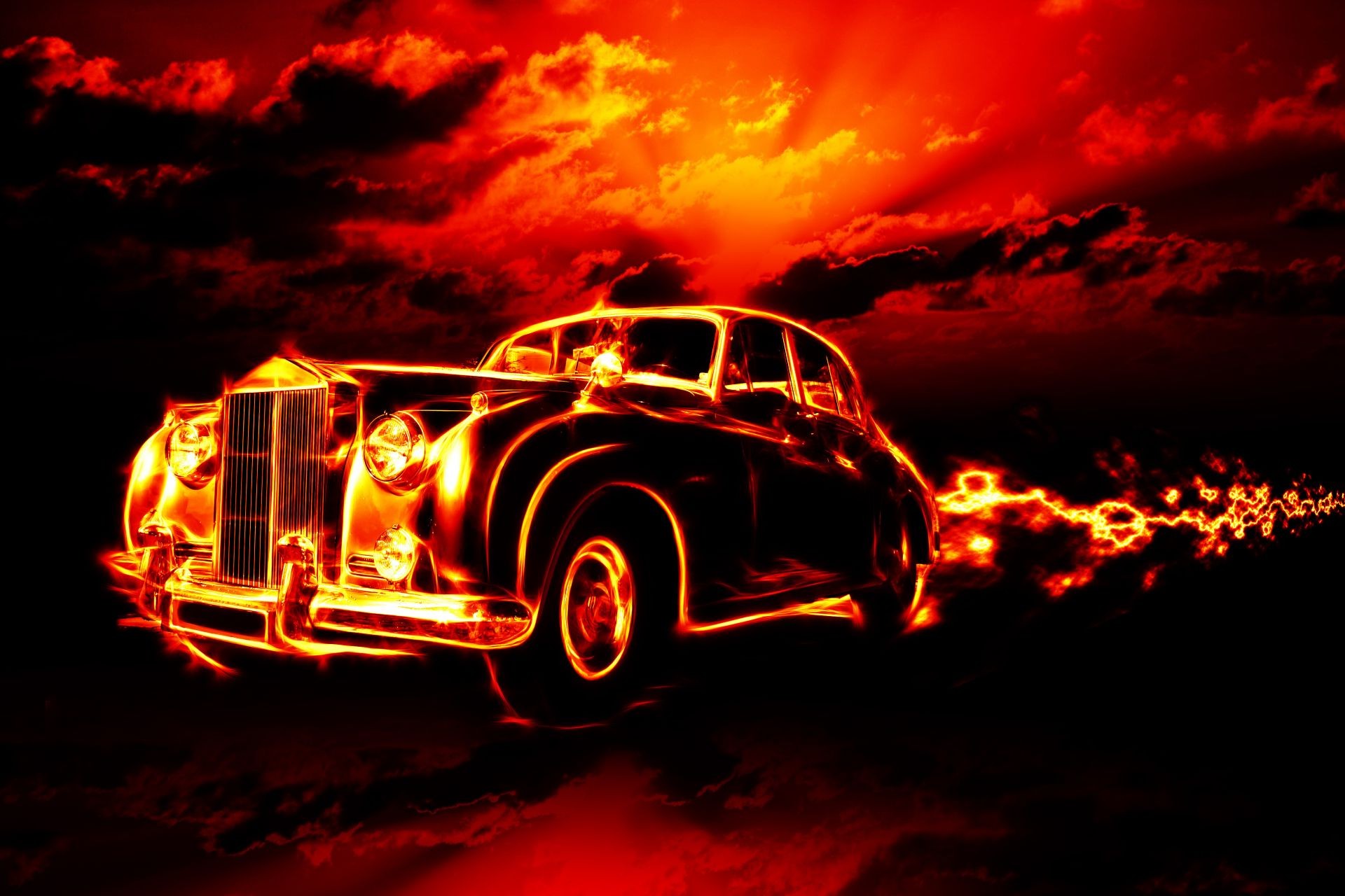 Ein feuriges Auto hinterlässt eine feurige Spur am Himmel
