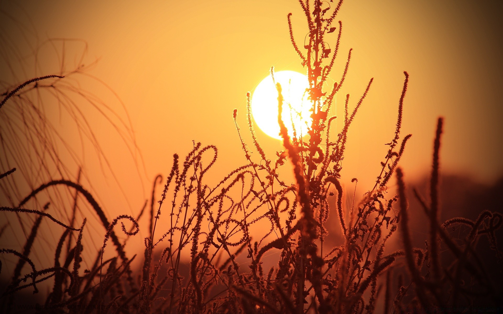 Gras auf verschwommenem Hintergrund mit Sonnenuntergang