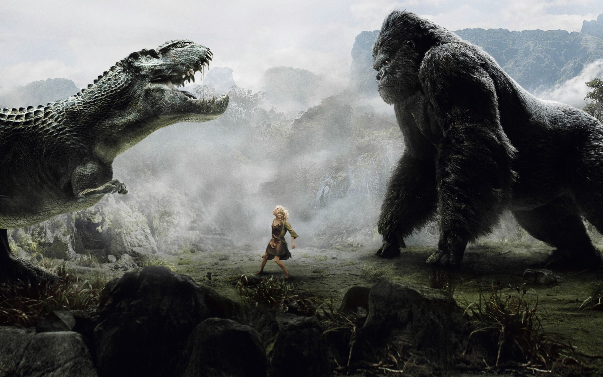 Der Wettbewerb von Kinkogng und einem Dinosaurier um das menschliche Leben