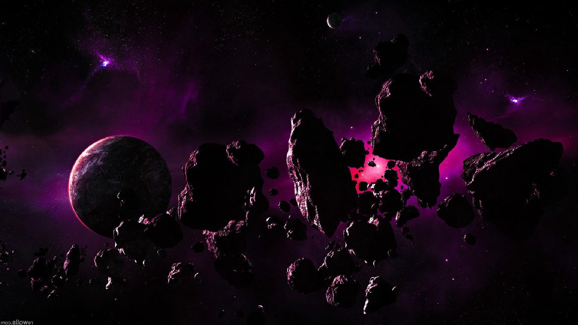 Eine Ansammlung von Asteroiden vor dem Hintergrund des Planeten