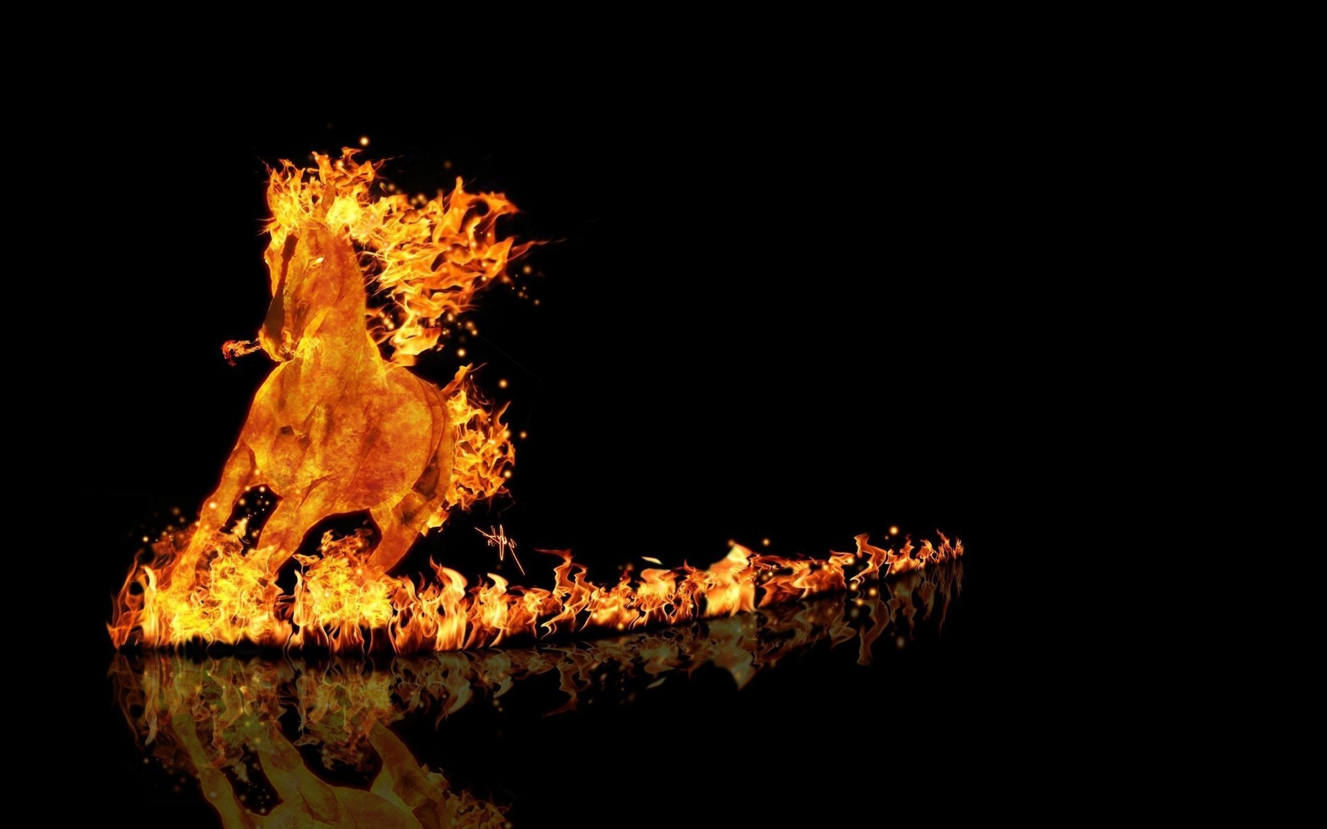 Ein Pferd in brauner Farbe in einem blühenden Feld