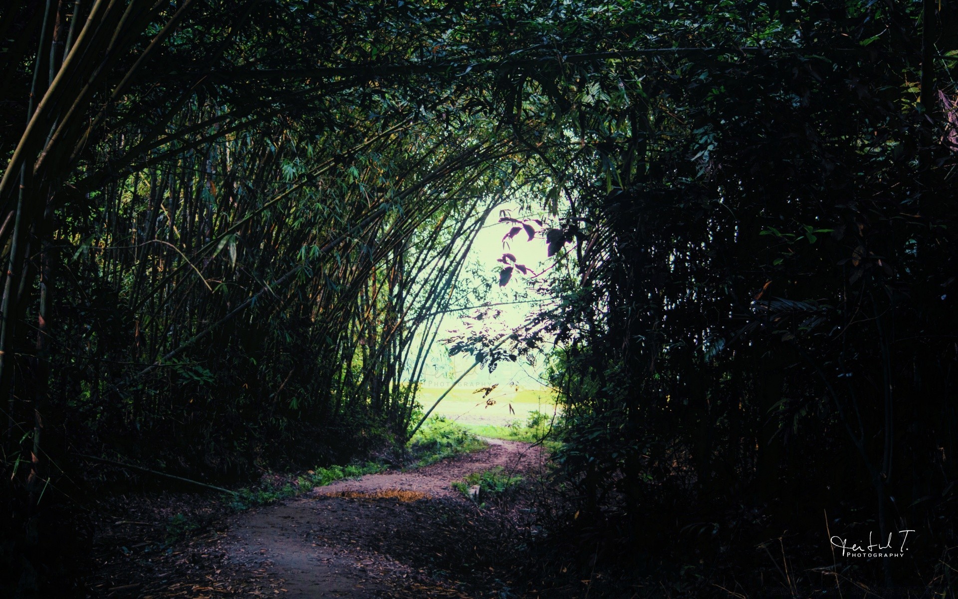 Asphaltierte straße, die in einen nebligen wald führtAsphaltierte Straße, die in einen nebligen Wald führt