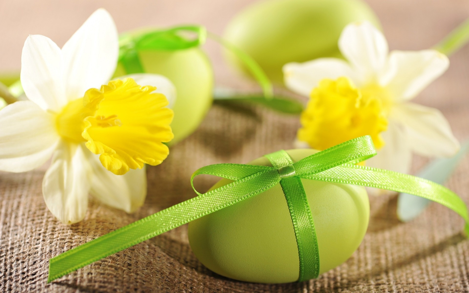 Geschenke für Ostern. Blumenkorb. Gefärbte Eier