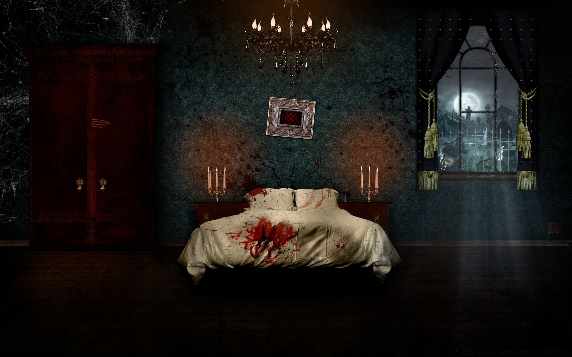 Blutiges Bett im Halloween-Haus