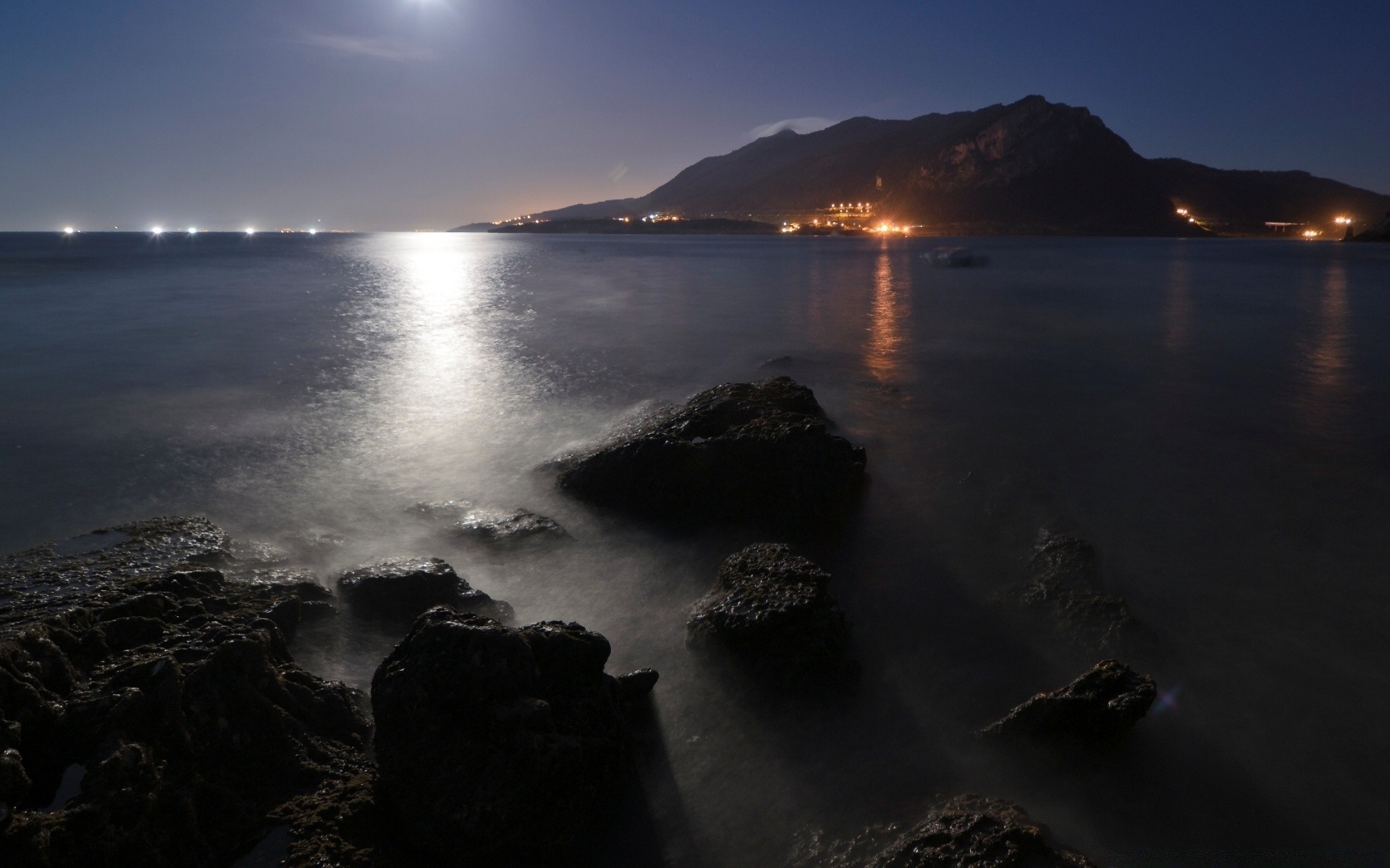 Meer bei Nacht, Mondbahn auf dem Wasser