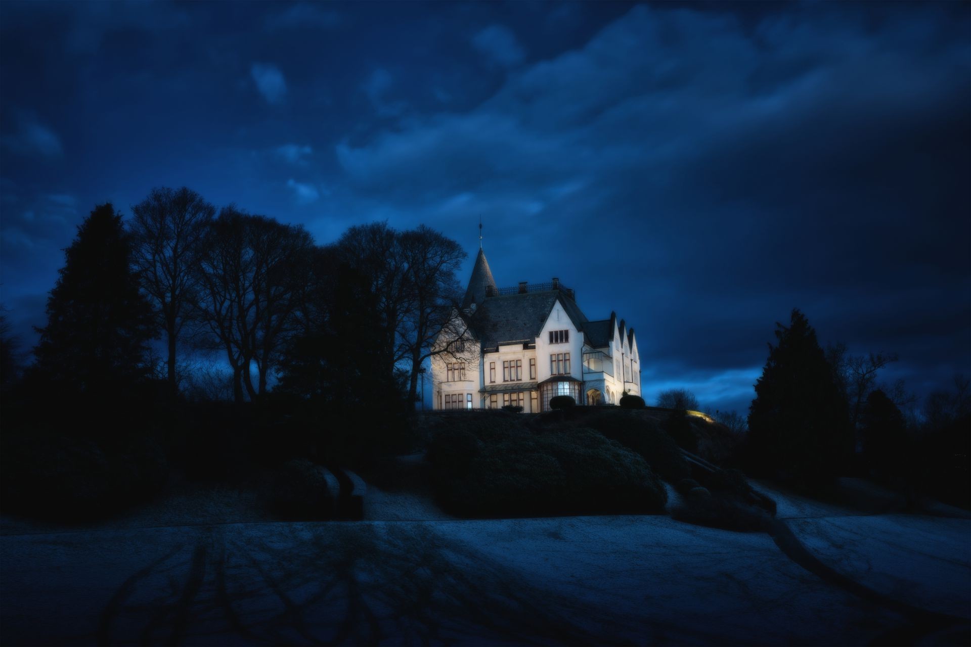 Nachtbeleuchtung von deutschen architektonischen sehenswürdigkeiten an der uferpromenadeNachtbeleuchtung von deutschen architektonischen Sehenswürdigkeiten an der Uferpromenade