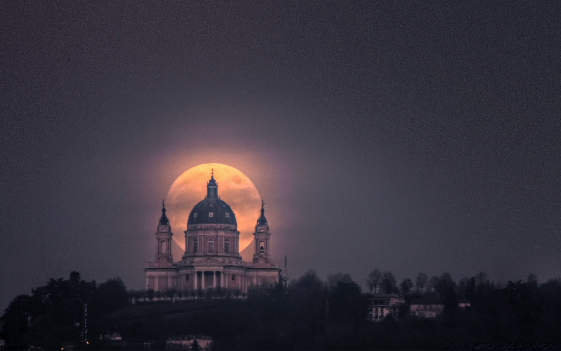 Zweige eines Baumes auf dem Hintergrund des Vollmondes