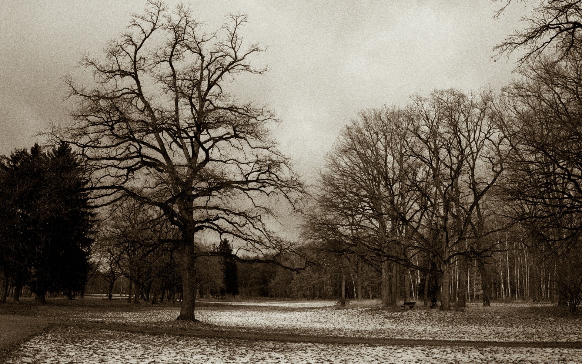 Schwarze und weiße Herbstlandschaft mit bewölktem Himmel