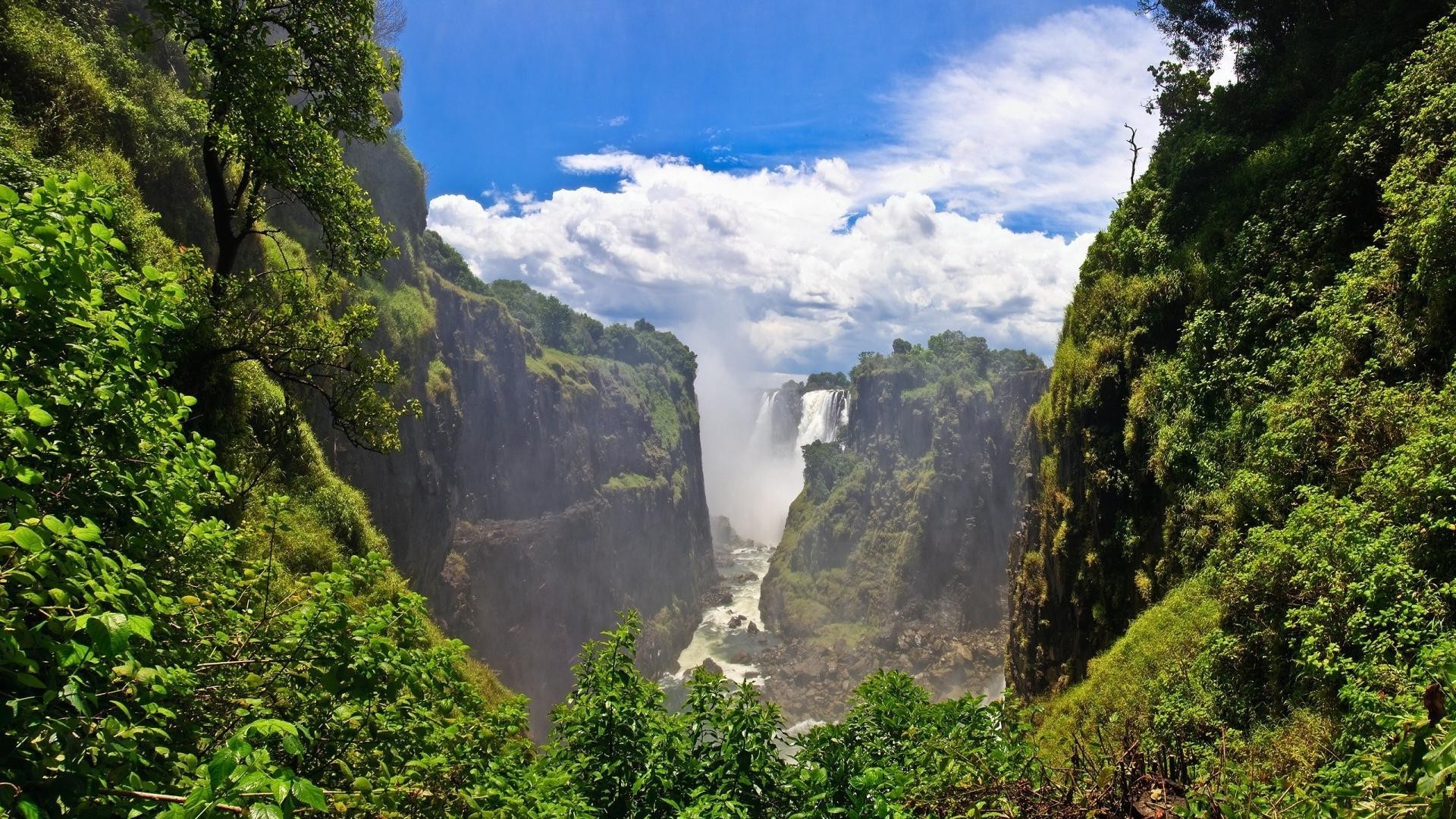 Ein schöner wasserfall inmitten eines üppigen holzes, der seine blätter jagtEin schöner Wasserfall inmitten eines üppigen Holzes, der seine Blätter jagt