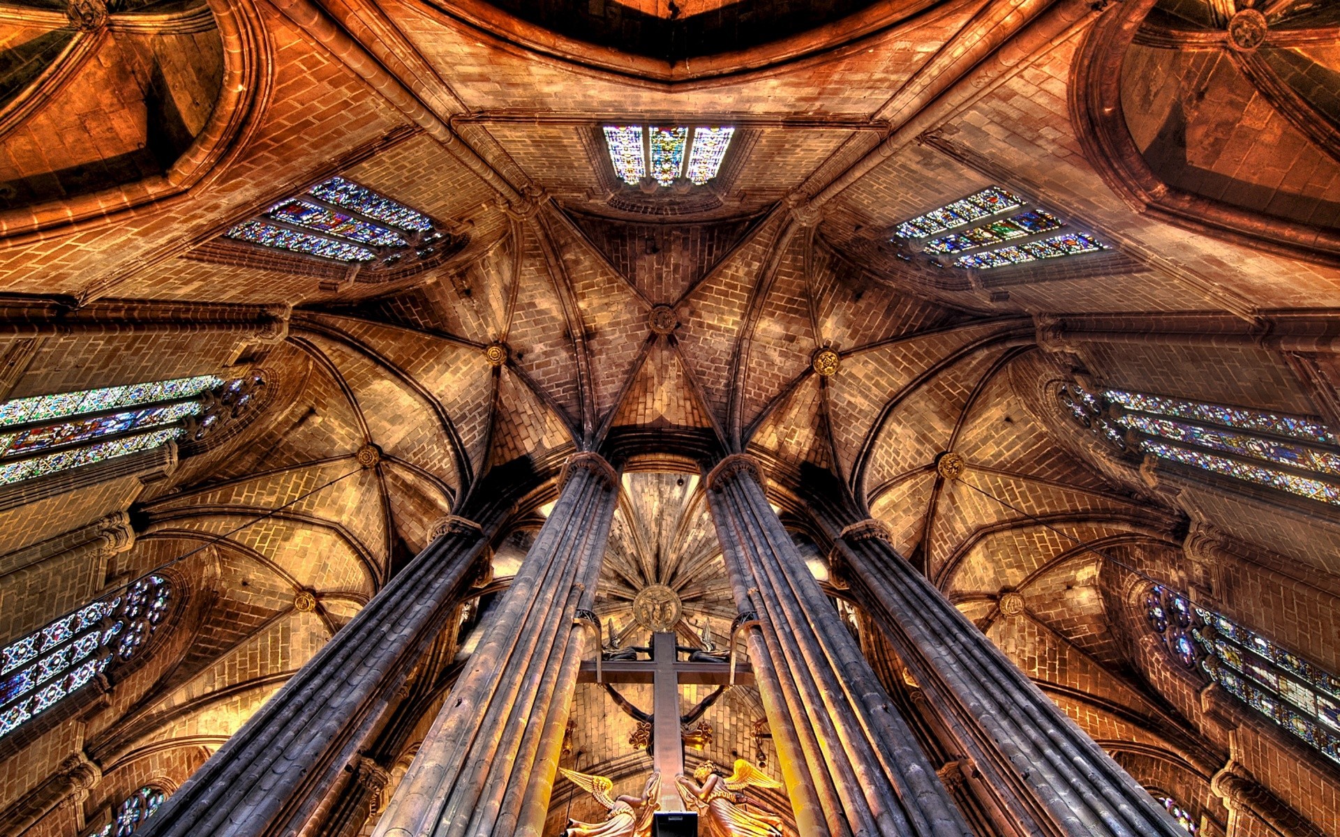 Unter der Kuppel der Kirche mit Mosaikfenstern