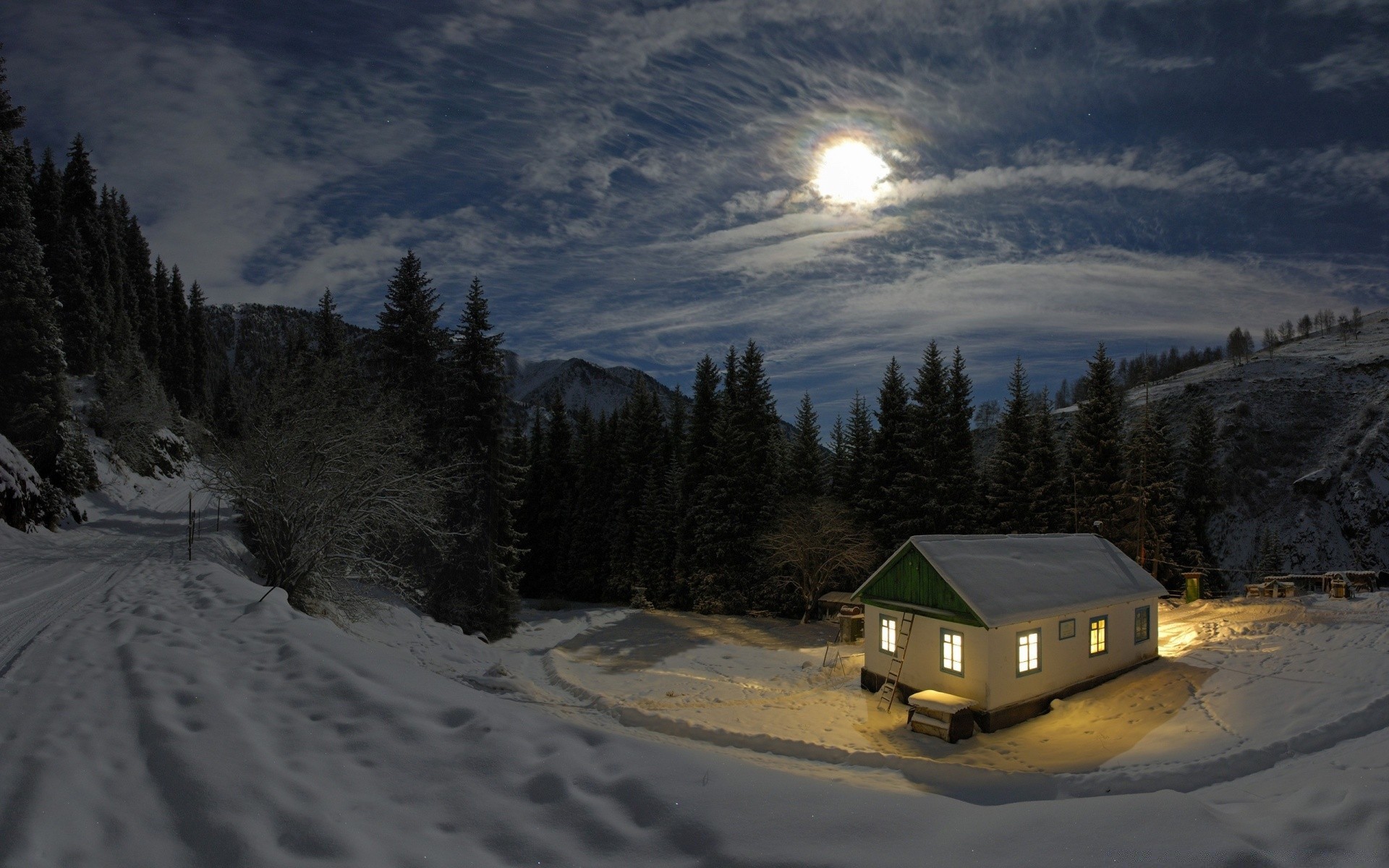 Fliegende Untertasse absorbiert das vom Wind weggeworfene Haus