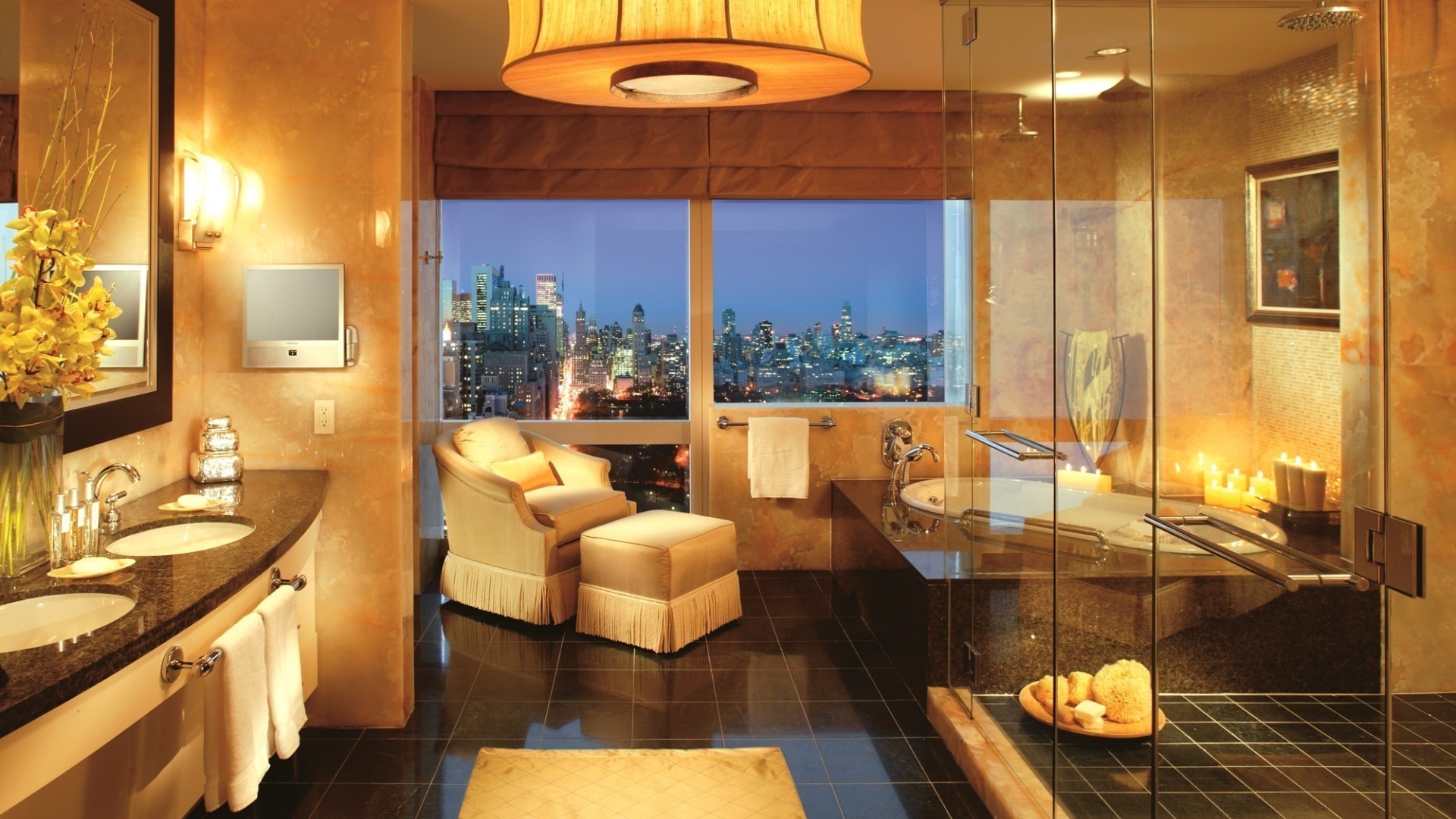 Badezimmerinnenraum mit transparenten Trennwänden