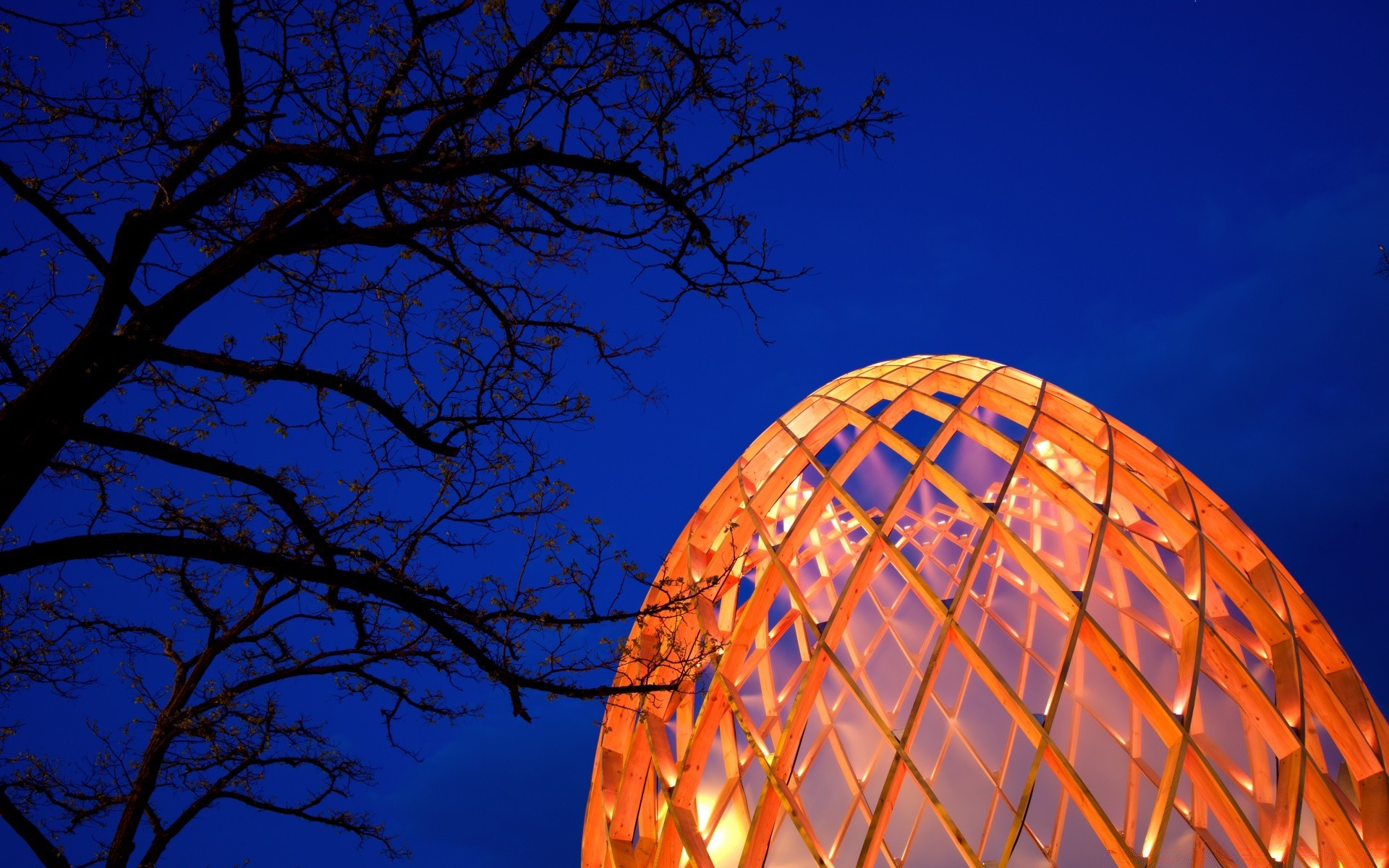 Mit laternen beleuchtete brückenstützen. in dunkler nachtMit Laternen beleuchtete Brückenstützen. in dunkler Nacht