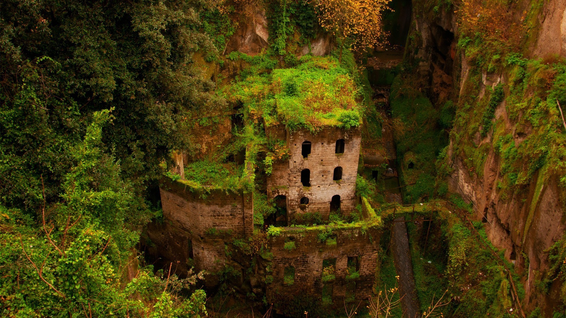 Märchenhaftes Haus auf einem bewachsenen Teich