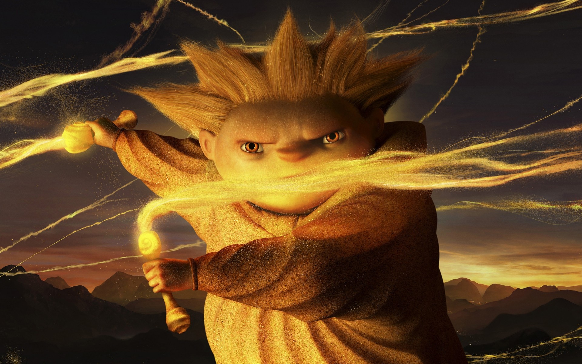 Fantasy-Held schaut sich die Skulptur eines Säugetiers an
