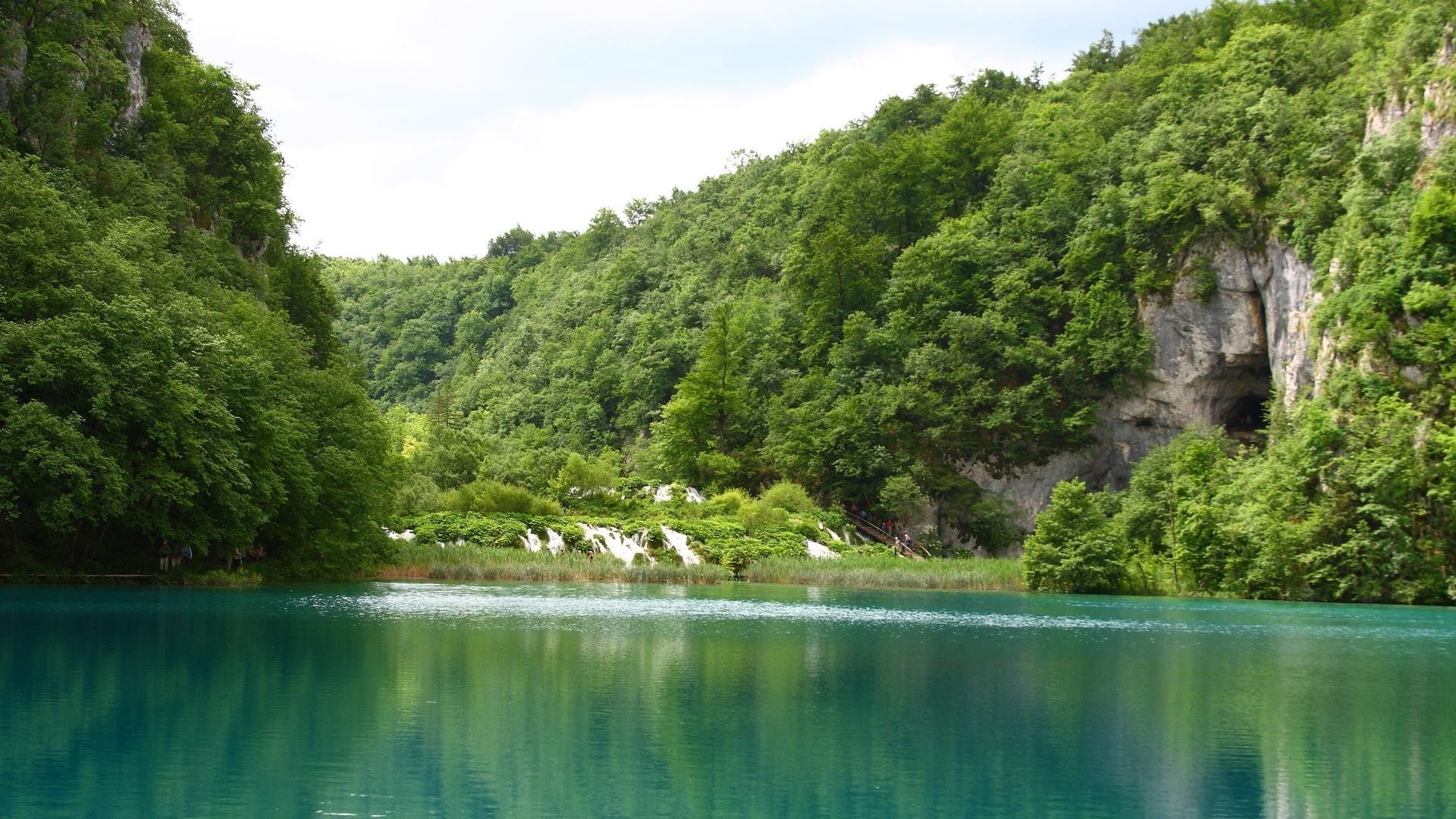 Natürlicher See im warmen Sommer