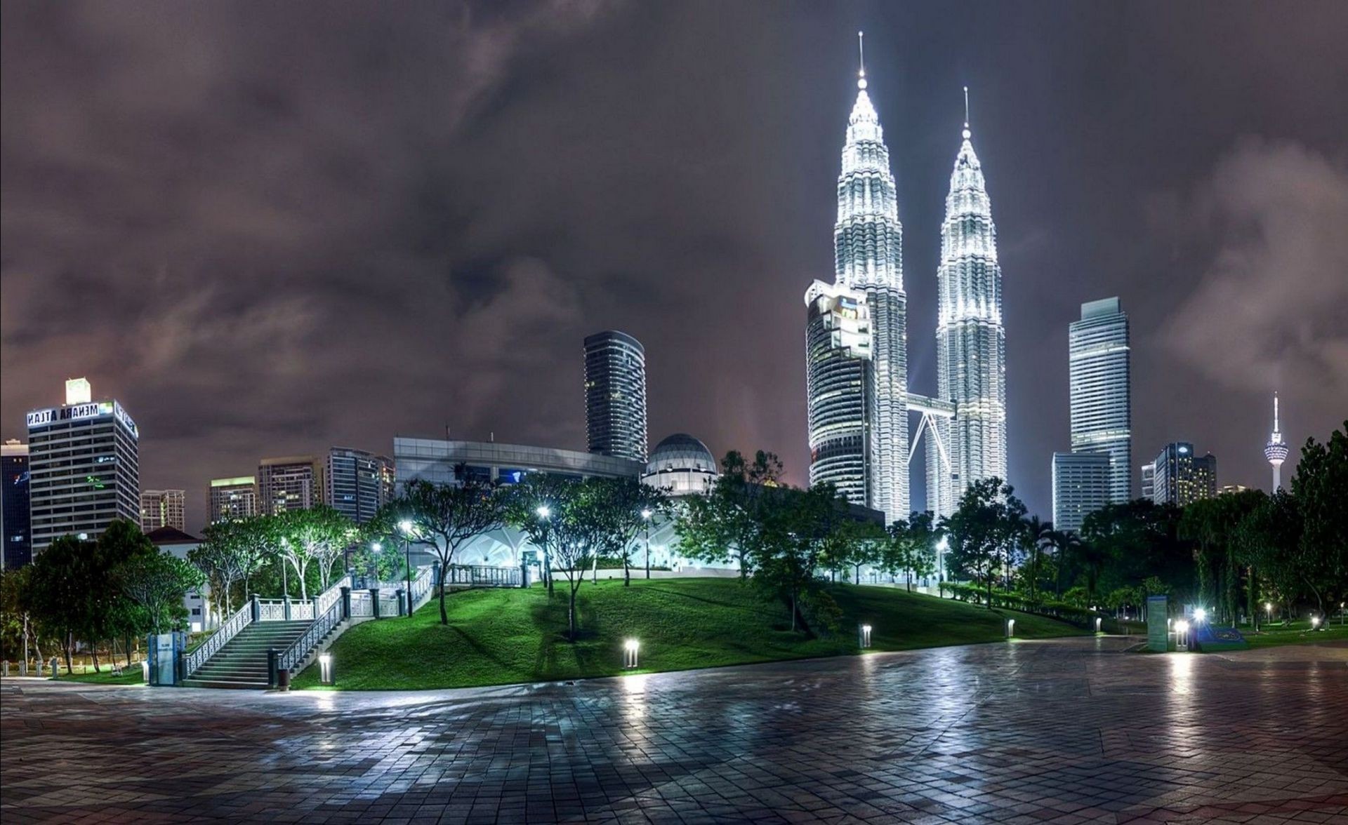 Hochhäuser mitten in der Nachtstadt