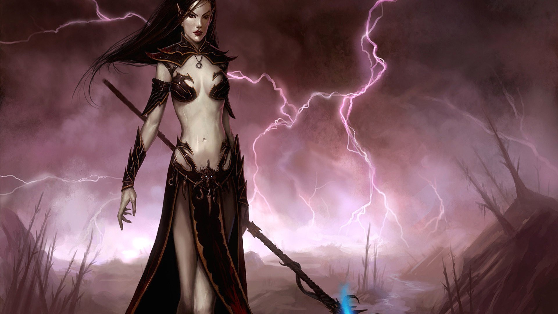 Eine hexe im märchenwald. fliegen der blütenblätterEine Hexe im Märchenwald. Fliegen der Blütenblätter