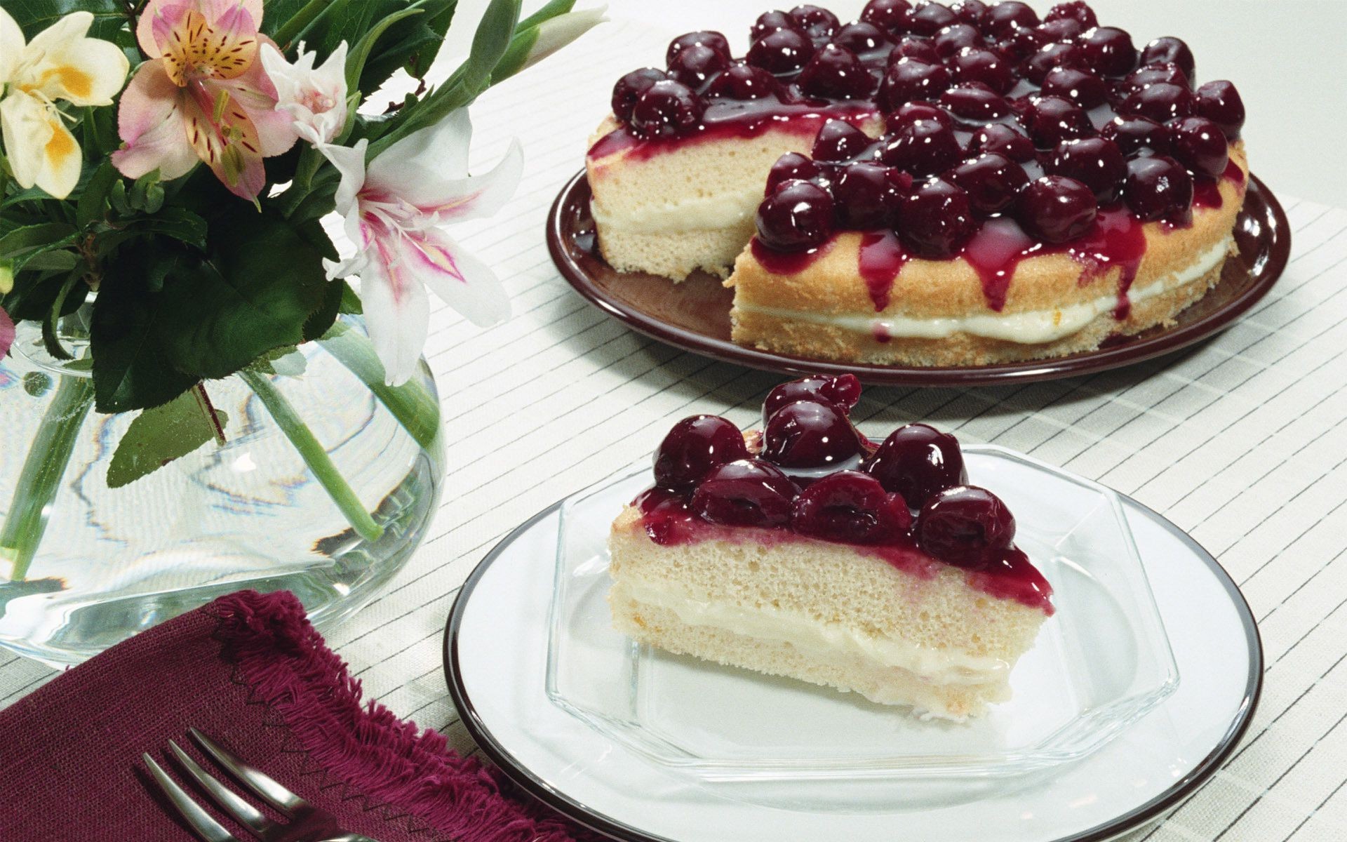 Kirschkäsekuchen auf dem Tisch