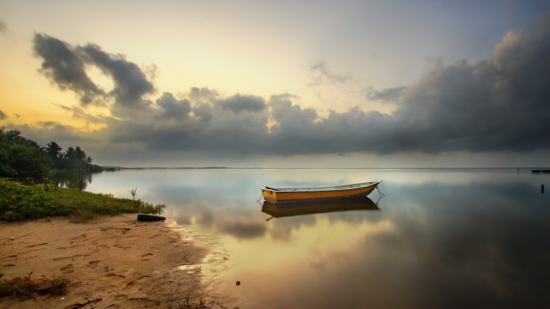 Es gibt viel Wasser hier, aber ich sehe den Strand nicht; es gibt auch keinen Sonnenuntergang, vielleicht ist es die Morgendämmerung?