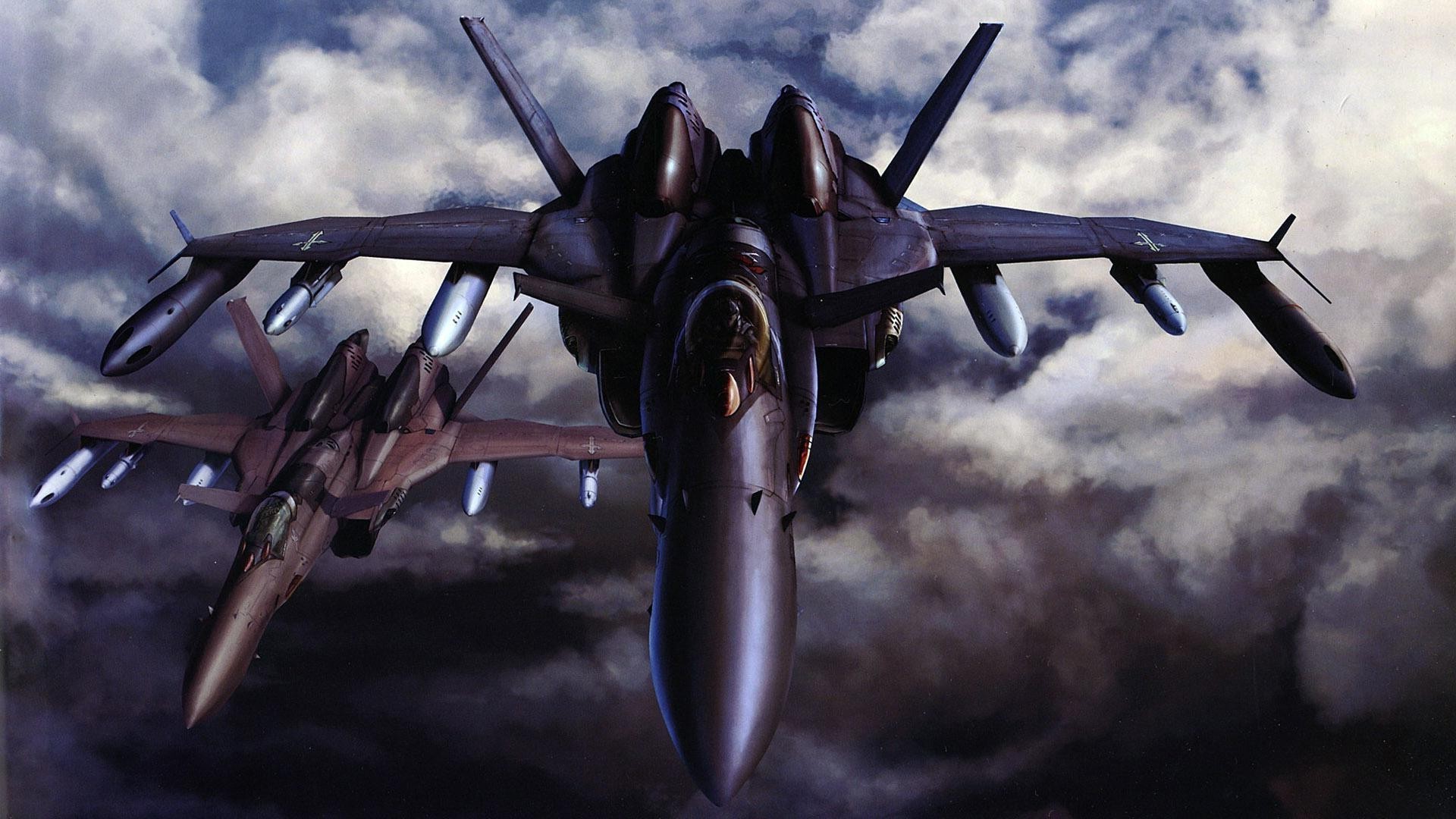 Schwarze Kampfjets fliegen Halbwolken in den Himmel