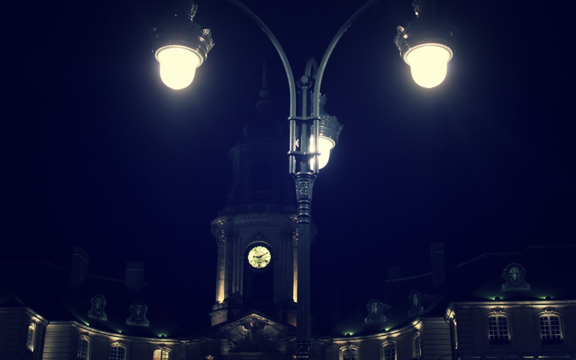 Ein düsterer Sonnenuntergang über der Architektur der Stadt