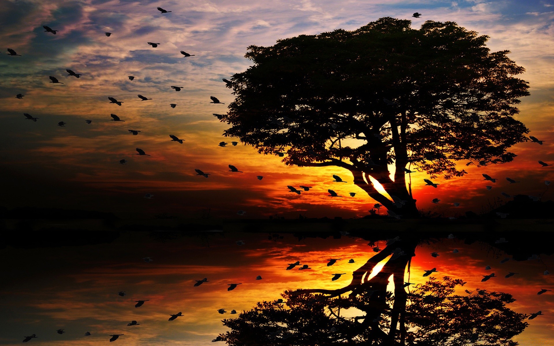 Abend sonnenuntergang landschaft auf waldhintergrundAbend Sonnenuntergang Landschaft auf Waldhintergrund