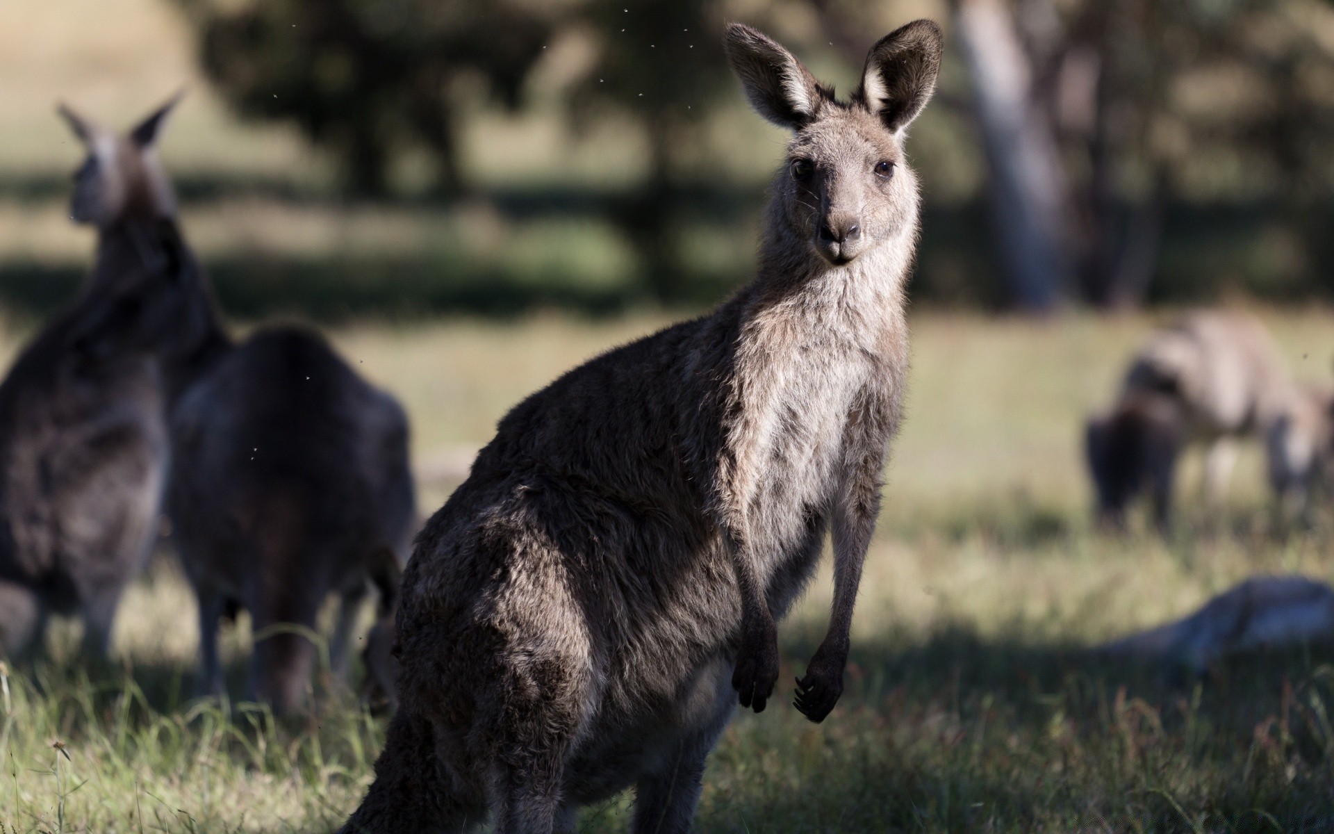 Das Känguru steht auf den Hinterbeinen
