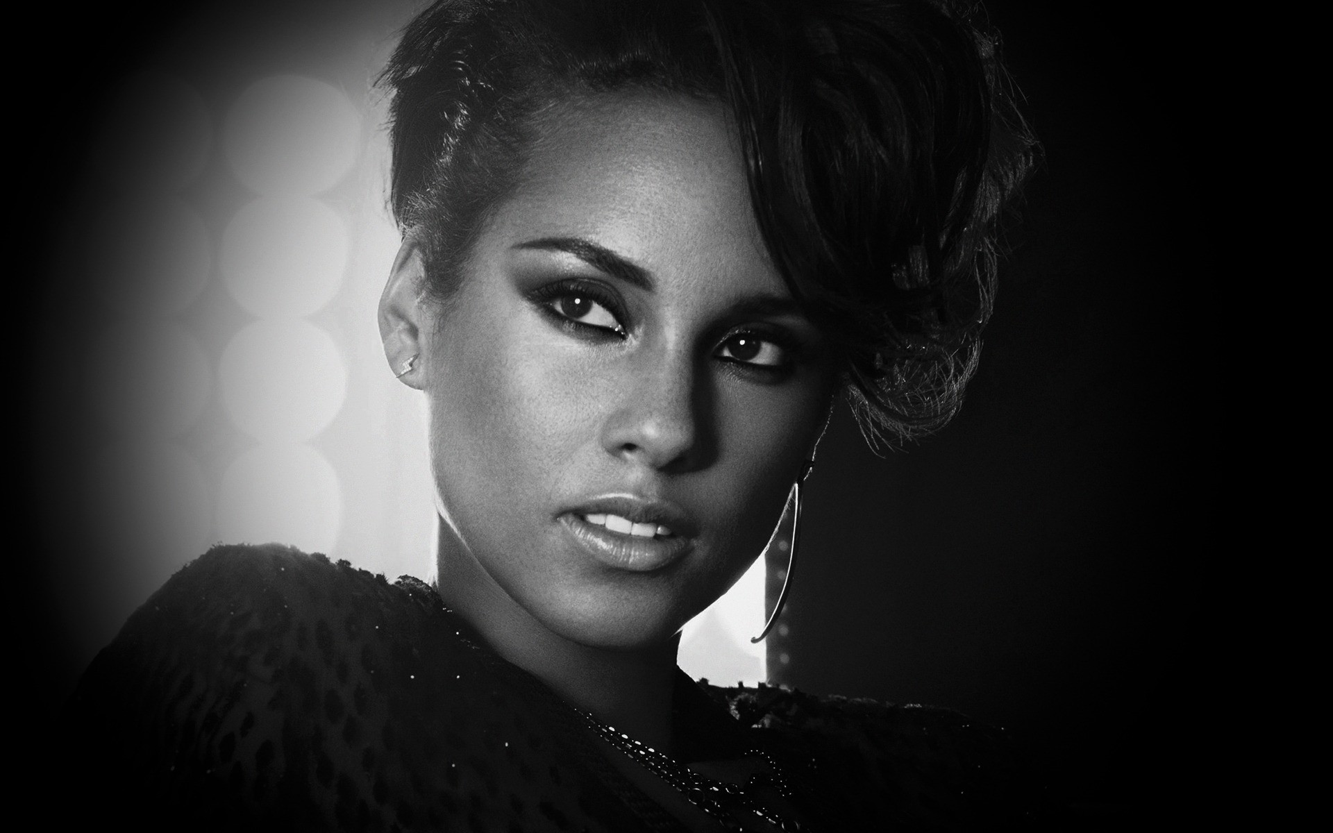 Sängerin auf dem Tisch im gestreiften Badeanzug