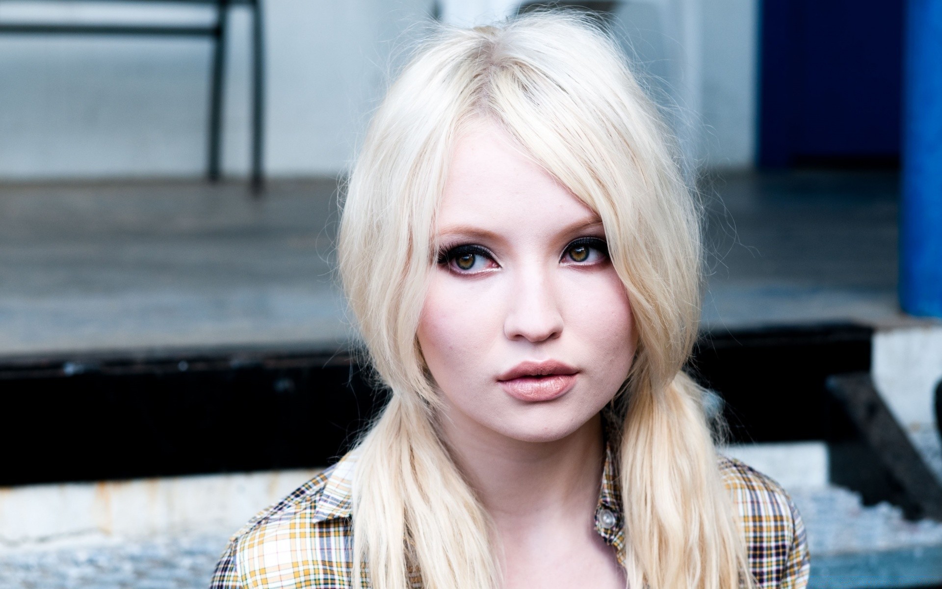 Die Schauspielerin in einer durchscheinenden Bluse lächelt