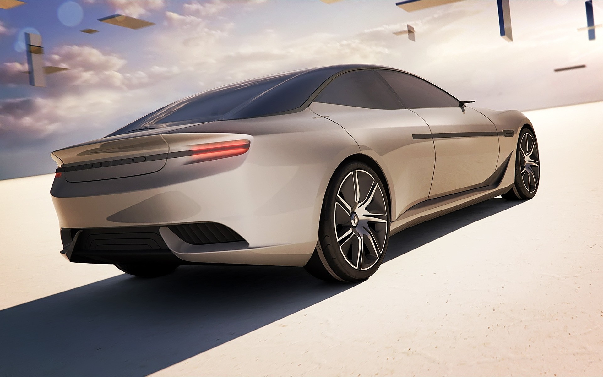 Schwarz-rotes Auto bewegt sich in Richtung Wolken