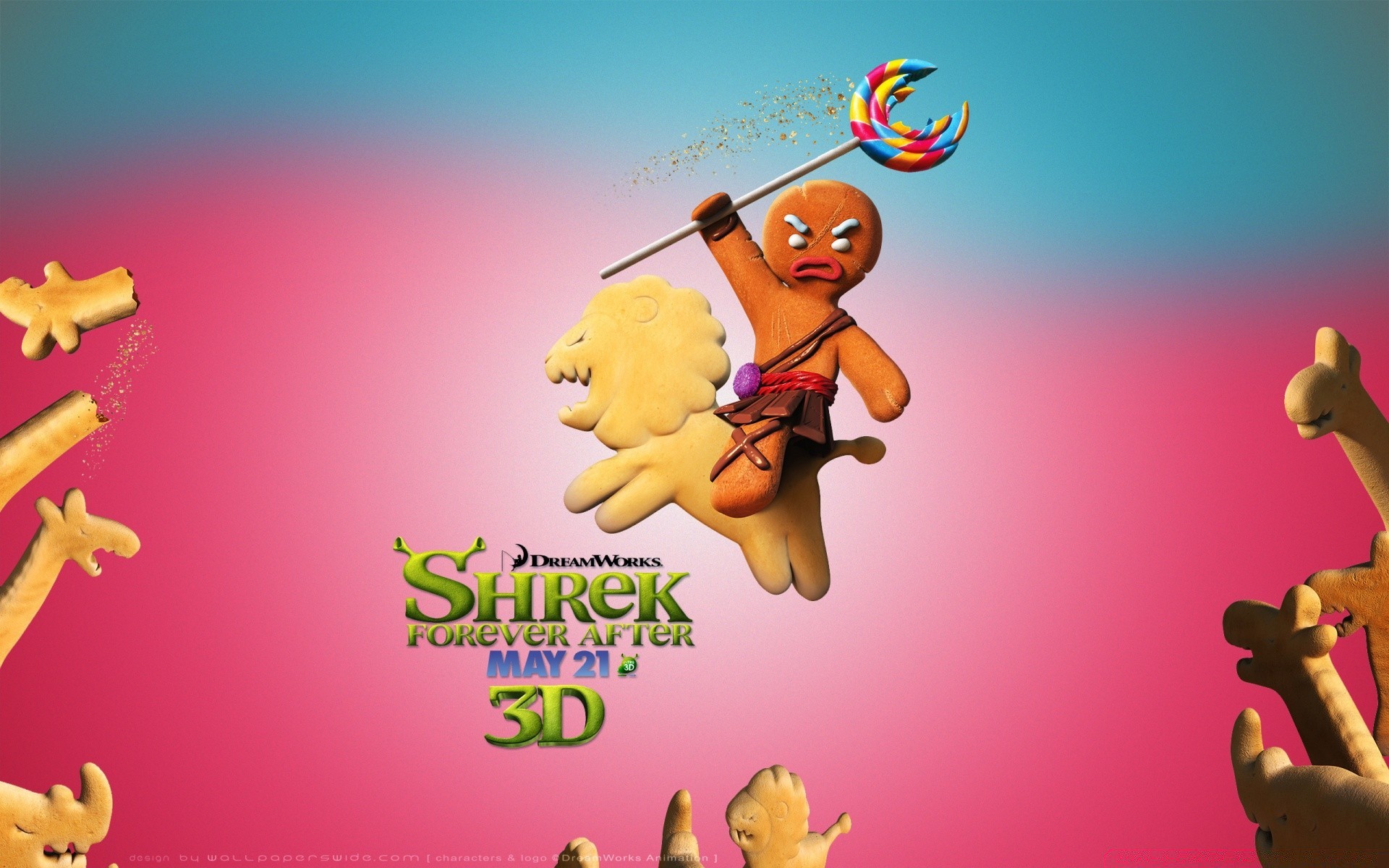 Cartoon Shrek Cookie auf einem Löwen mit einem Lutscher in der Hand