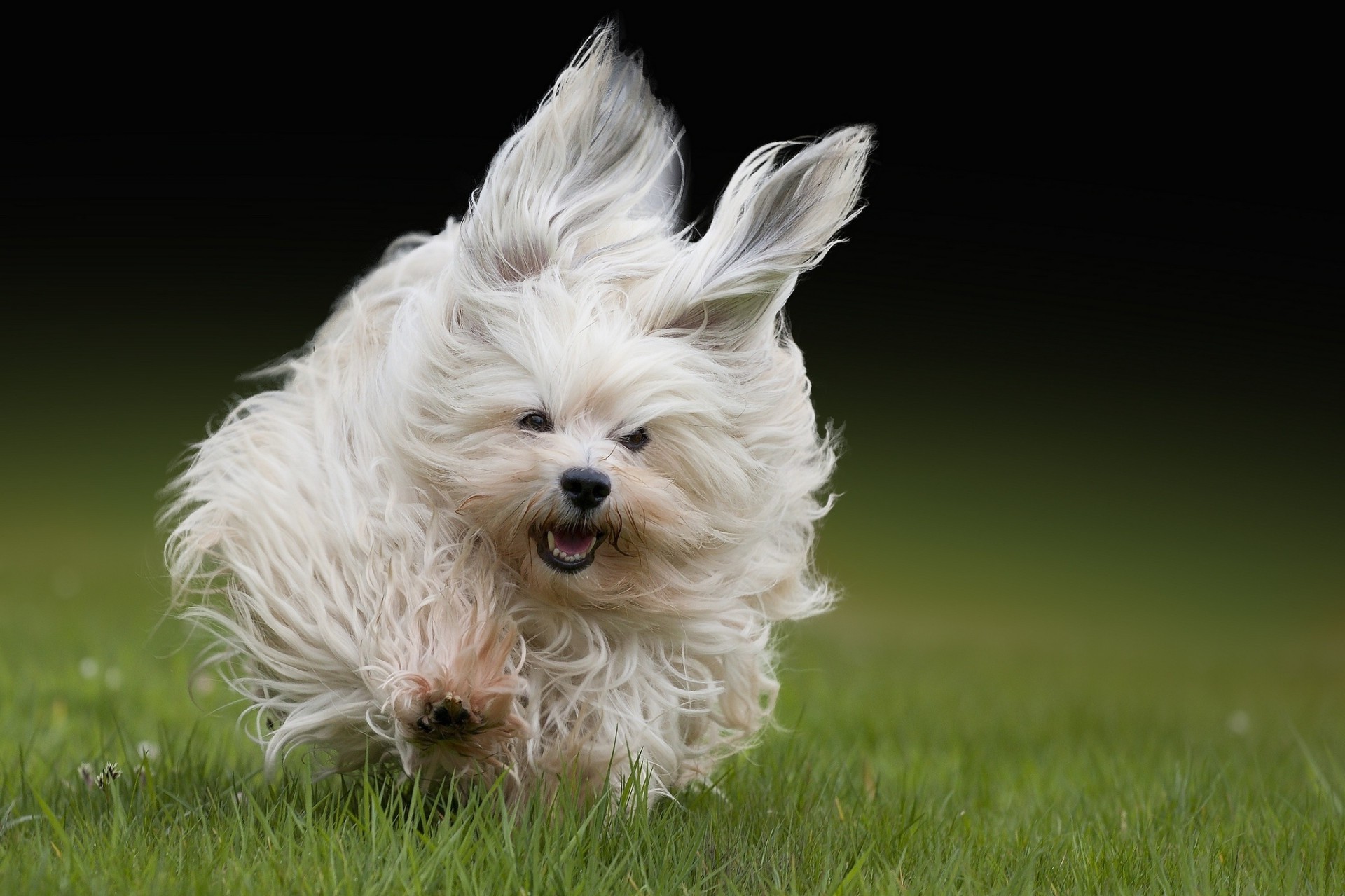 Schönes Foto des Hundes auf dem Hintergrund des Grases
